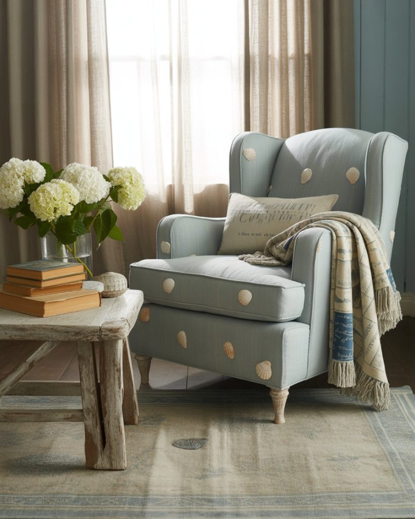 The coastal cottage farmhouse combines breezy coastal touches with the sweetness of cottage design. Pale blues, seashell textures, and driftwood blend with patchwork textiles and antique finds. It’s casual and charming, making you feel both by the shore and at home. I remember stepping into such a space and feeling instantly relaxed, like summer lived on year-round.