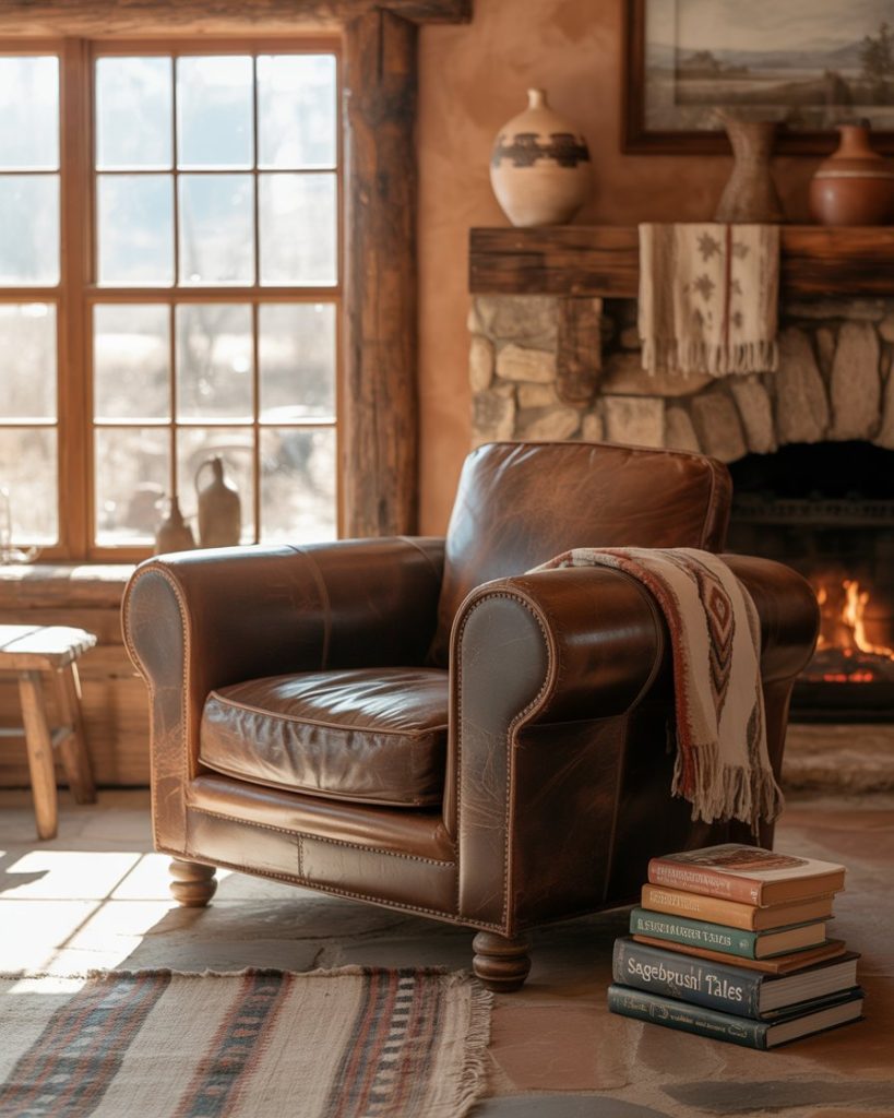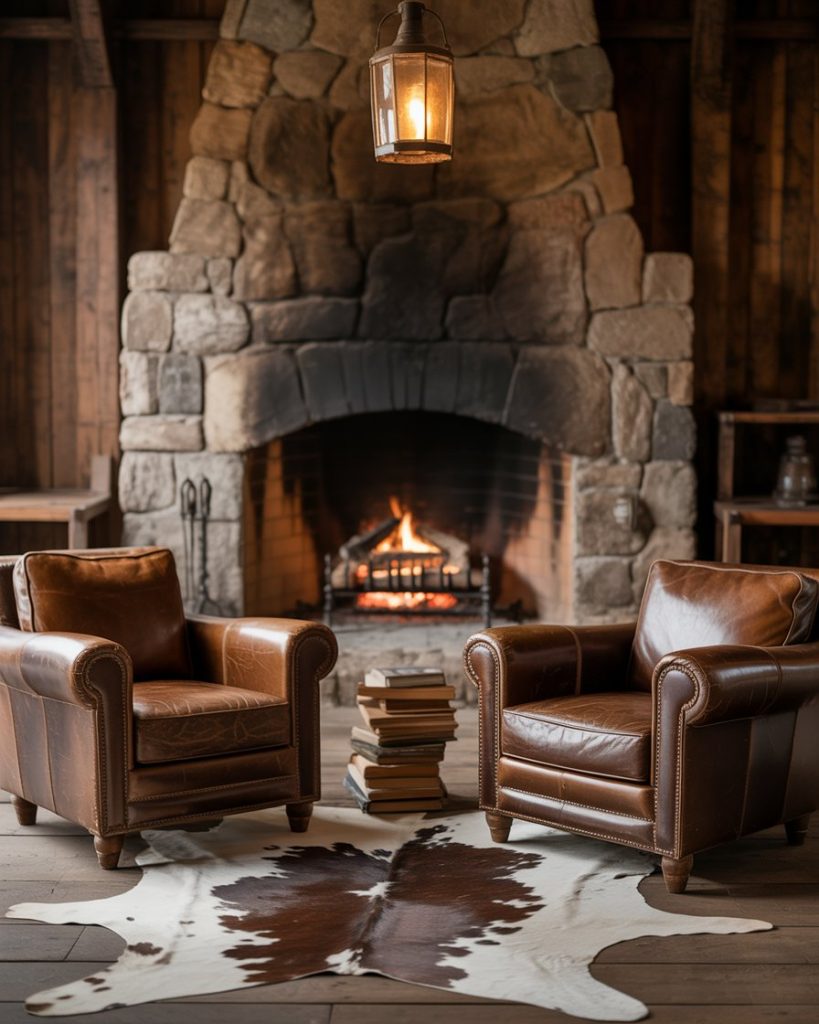 The Western farmhouse adds rugged charm with leather seating, cowhide rugs, and moody tones. Dark wood beams and a stone fireplace create an earthy base, while soft textiles balance it out. A friend in the city once said her Western-inspired living room made her feel like she lived in a mountain lodge—proof that atmosphere matters as much as furniture. It’s cozy, bold, and undeniably inviting.