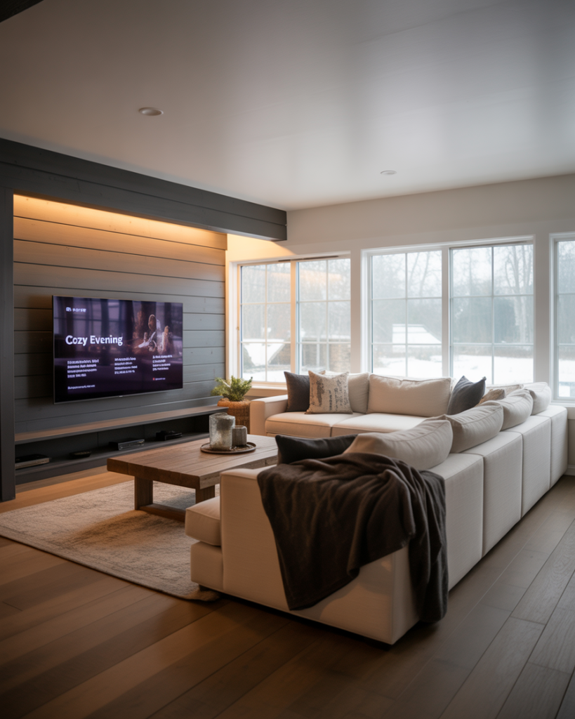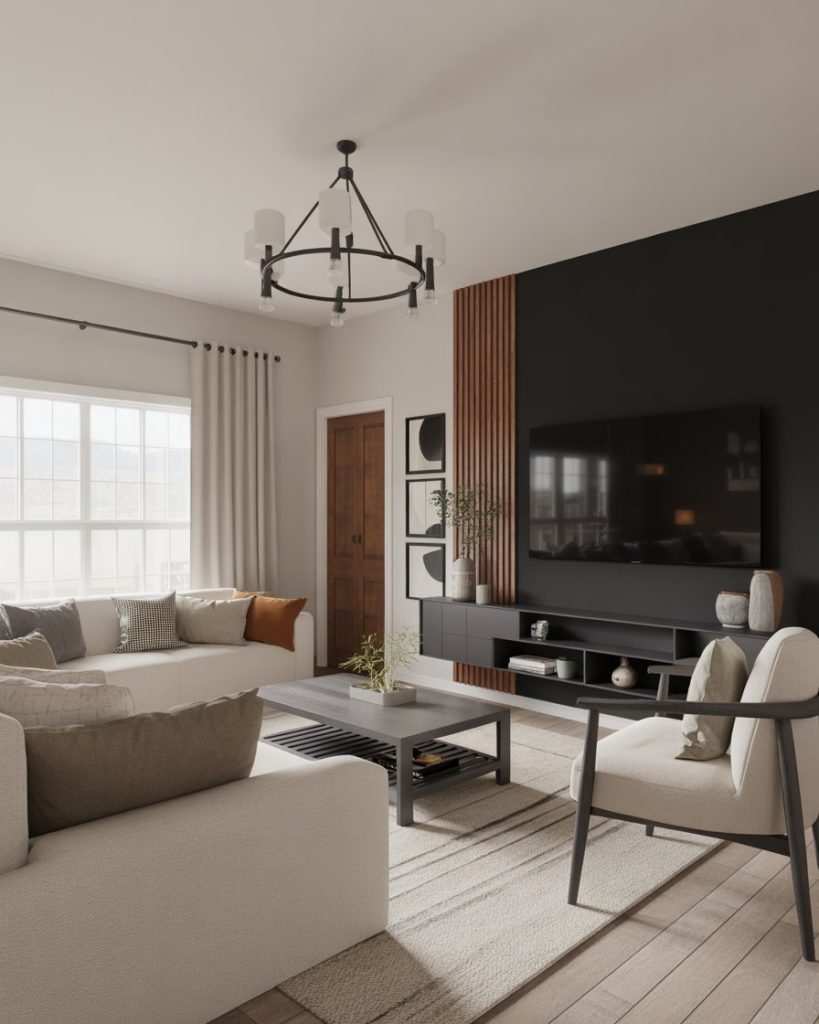 The contemporary farmhouse emphasizes openness and balance. Neutral paint colors, clean furniture, and thoughtful wall decor make the space uncluttered yet welcoming. Some choose a dark accent wall or stylish tv wall for contrast, adding depth without losing simplicity. This style appeals to those who love the farmhouse’s warmth but want it dressed in modern elegance—an ideal space to recharge after a hectic day.
