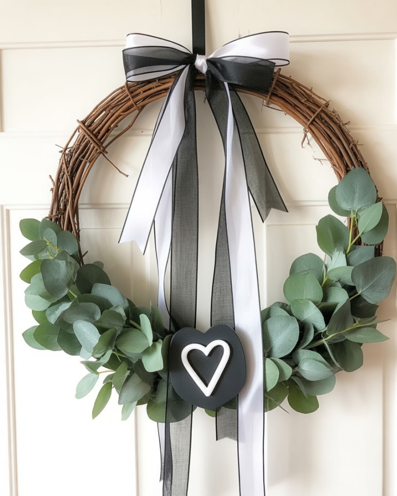 For a sleeker look, go with modern farmhouse wreaths garlands. Using eucalyptus greenery, black-and-white ribbons, and minimalist heart accents, you get a chic style that feels fresh. I once swapped my old bulky red wreath for a slim eucalyptus one, and visitors immediately noticed the upgrade. Magnolia Market often emphasizes greenery for a modern farmhouse vibe, and Valentine’s is the perfect excuse to try this look.