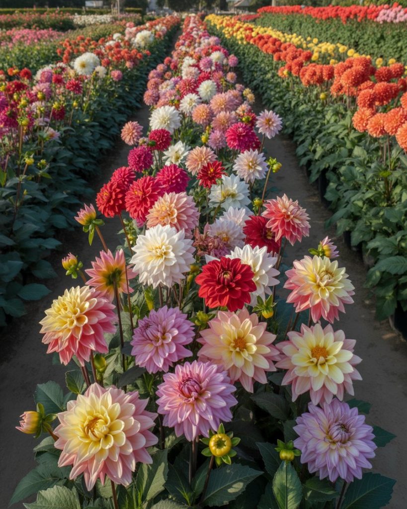 A Dahlia garden feels like a living gallery of illustration and form. These flowers offer dramatic symmetry and endless shades — perfect for photoshoot sessions or painting inspiration. Whether planted in front of house or in rows, Dahlias make a beautiful centerpiece that radiates summer energy.