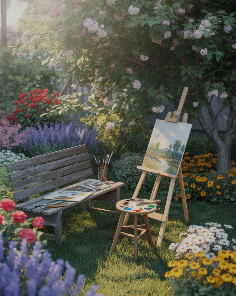 Many artists find drawing and painting outdoors deeply rewarding. A garden designed for creativity might feature shady seating, flower beds of Iris and lavender, and open views. This inspiration hub nurtures focus and expression — like setting up your own plein-air studio in your backyard.
