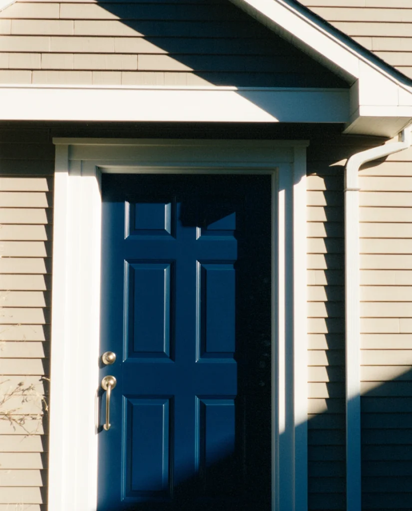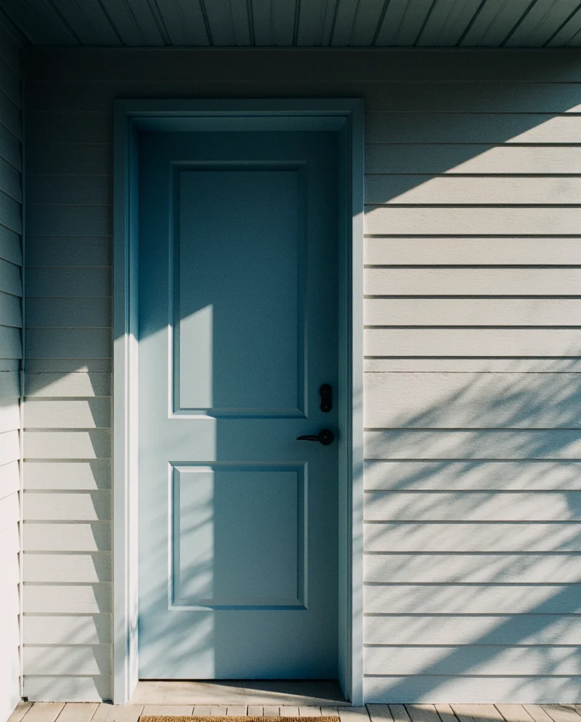A blue house pairs well with warm neutrals or contrasting bold doors. I once visited a friend whose blue siding looked fresher after they added a creamy taupe door. Designers on Houzz often suggest choosing softer tones to balance strong exterior colors, making the entry feel grounded and welcoming.