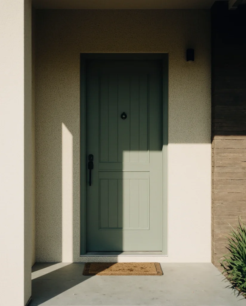 Sage green doors stand out on a beige house or brown house, offering earthy calm. During a recent remodel tour, I noticed more families choosing muted greens because they feel modern but not trendy. Bloggers at The Inspired Room note that sage stays popular thanks to its connection with organic, slow-living design.