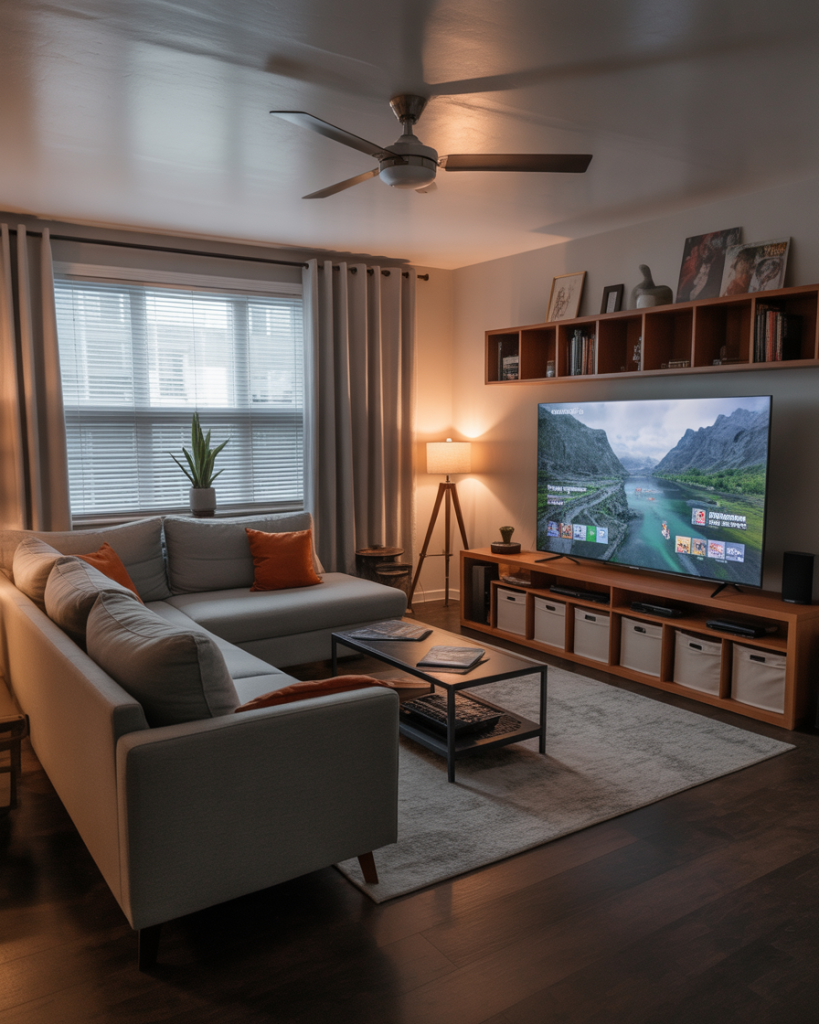 When working in a compact space, it is all about functionality. Wall-mounted desks and shelves, along with tiny TV stands, really help in squeezing a place within every nook. Foldable seats or storage under the desks also help in keeping small bedrooms cozy, which means that the area feels comfortable rather than cluttered. Bright colors for interiors, together with minimalist décor, give the illusion that the area is larger and airier.