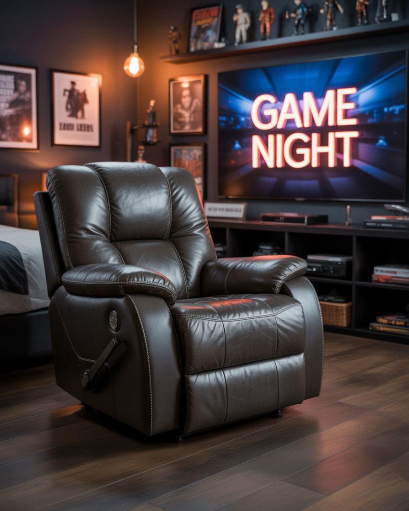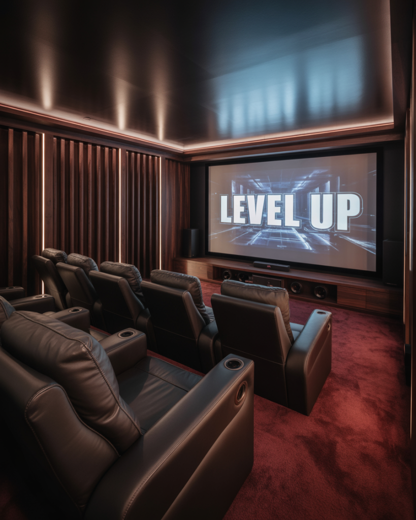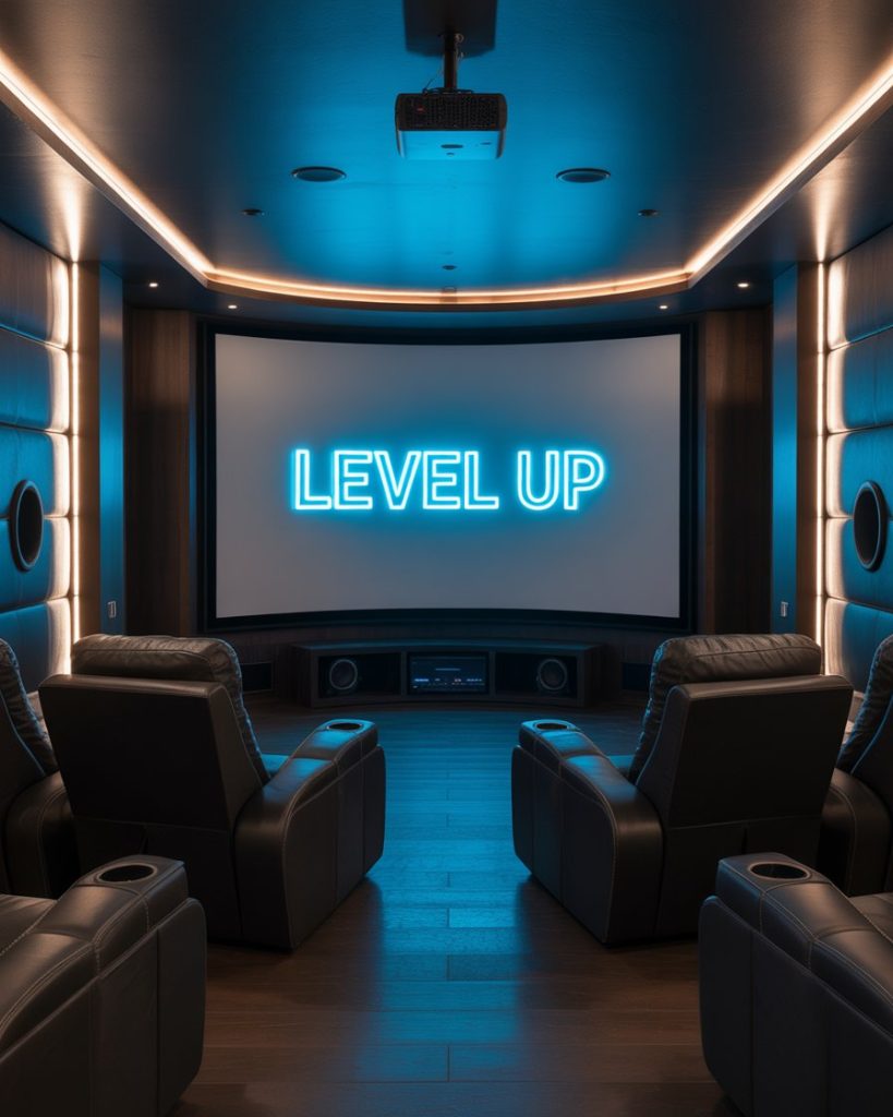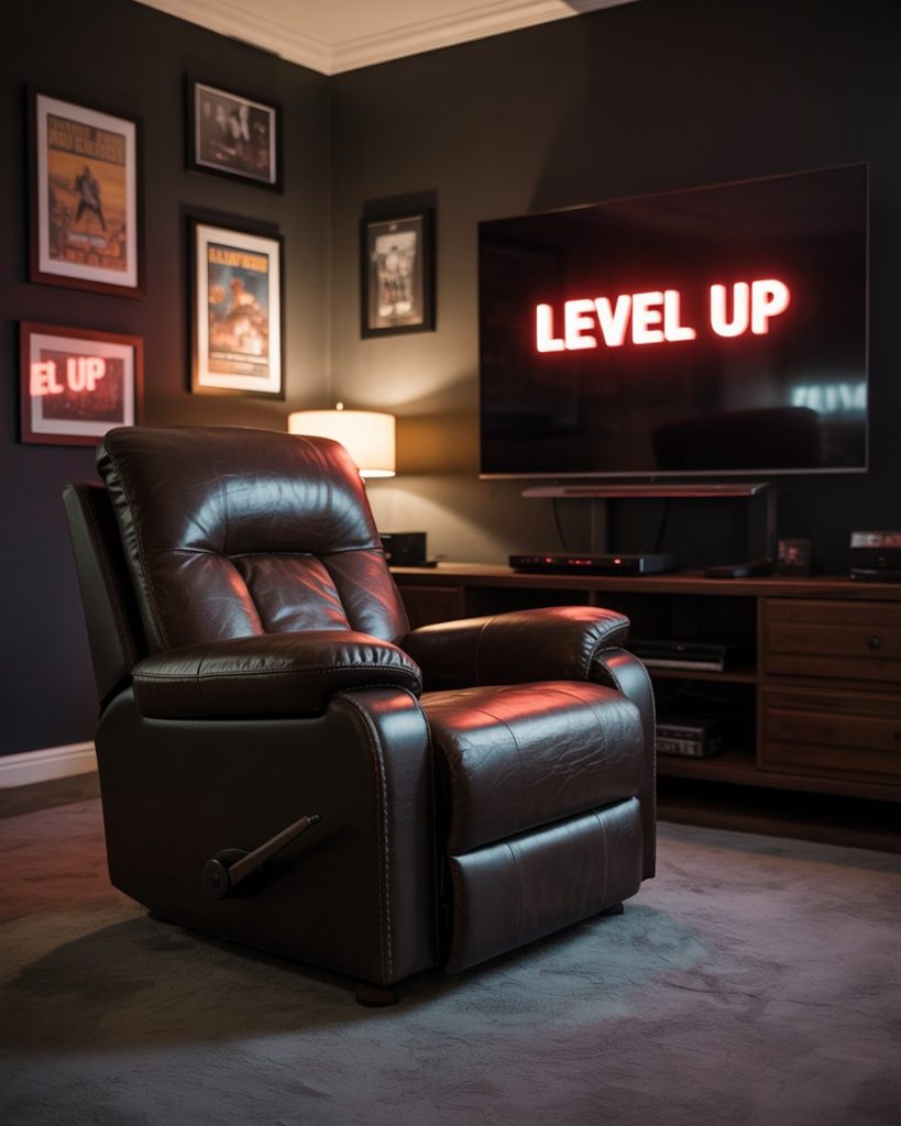 Transform your gaming into a cinematic experience with an opulent theater setup. Recliners, surround sound, and giant projection TV–the charm of it all is that it feels so immersive. This black environment serves gentlemen who appreciate both games and movies-the cherry on top of life.