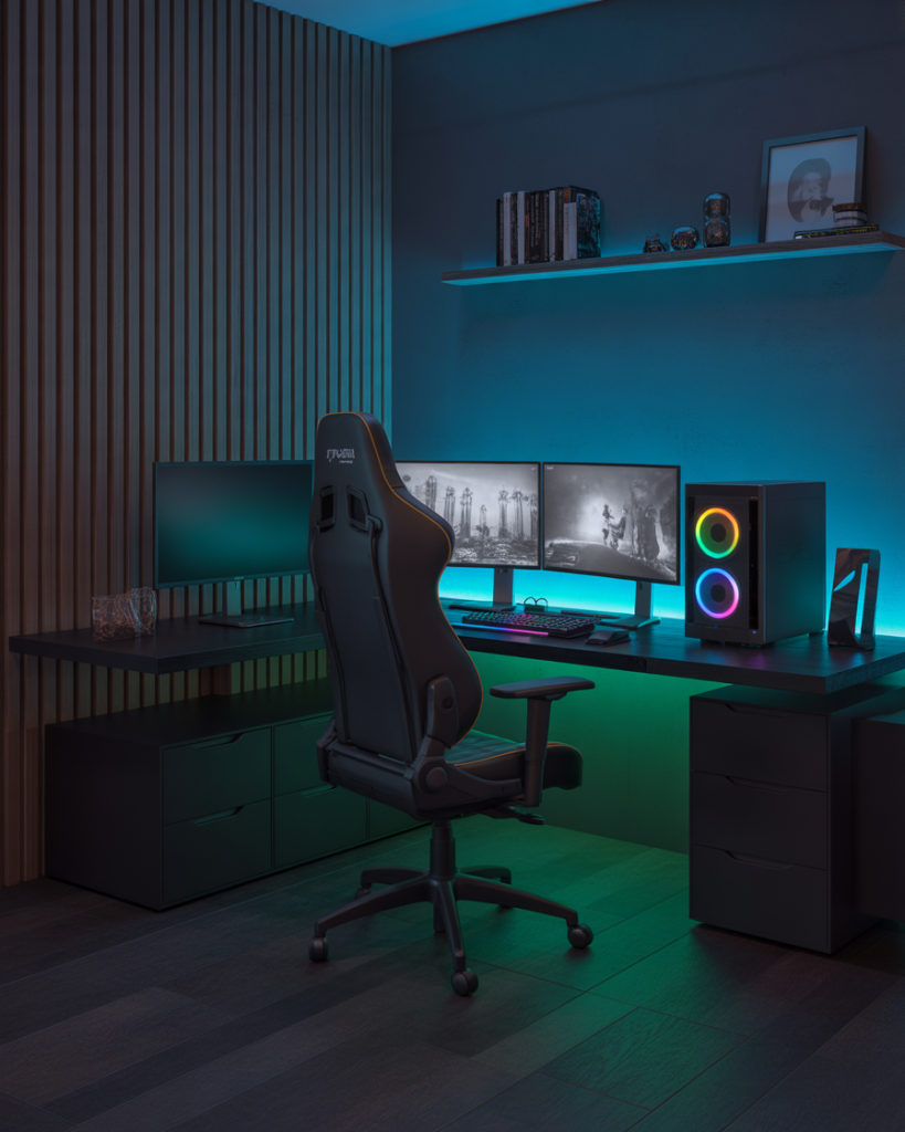 The very sight of a luxury PC station sends one into a futuristic workspace. The black monitors, the RGB keyboards with glowing backlights, and the obvious leather gaming chair create an ambiance of finer things. Either glass or wooden finishes can be added, with strip-wise lighting thrown in for a clean effect. Millennials, male or female, fitting the bill for gaming to be an edgelord kind of experience.