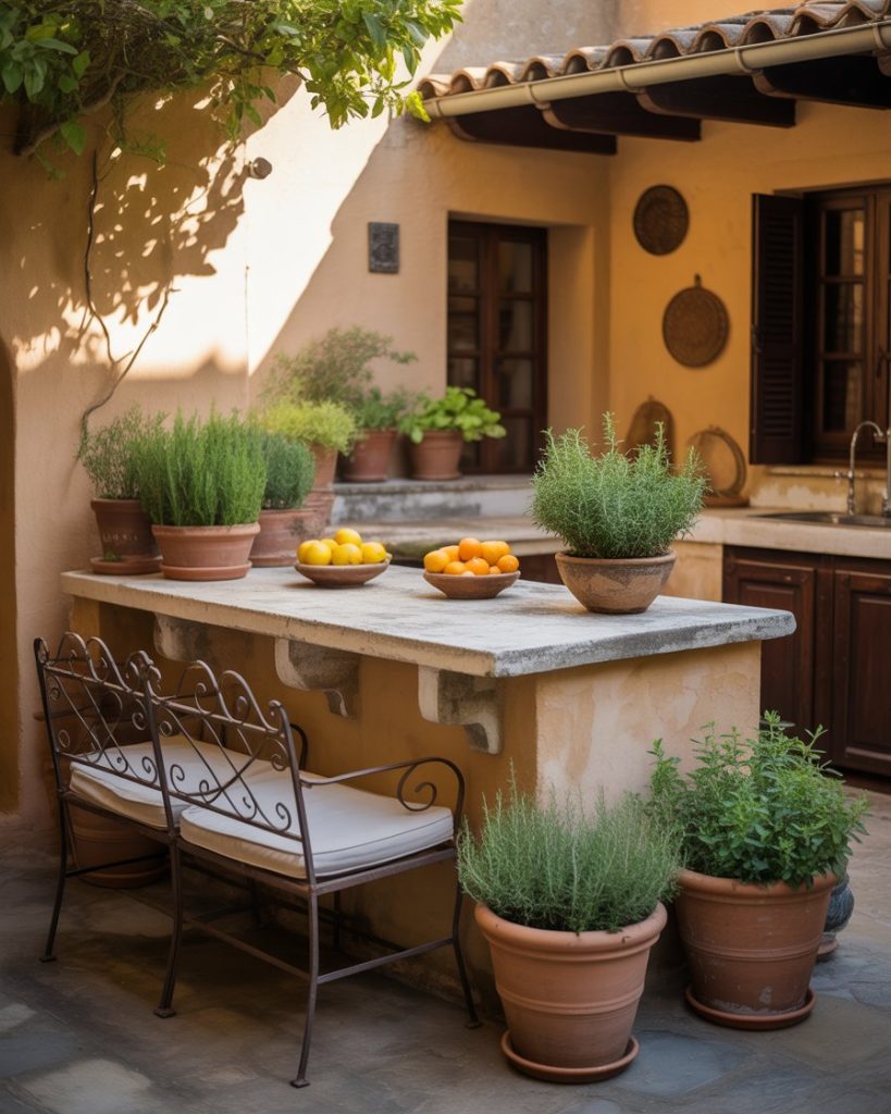 Blending food and style, the Mediterranean courtyard kitchen is gaining attention. Olive trees, citrus pots, and tiled counters create a relaxed space for outdoor cooking. Perfect for warm climates, this design transforms the home courtyard into both a dining hub and a garden sanctuary. Fresh basil, oregano, and tomatoes enhance the setting, uniting flavor and beauty.