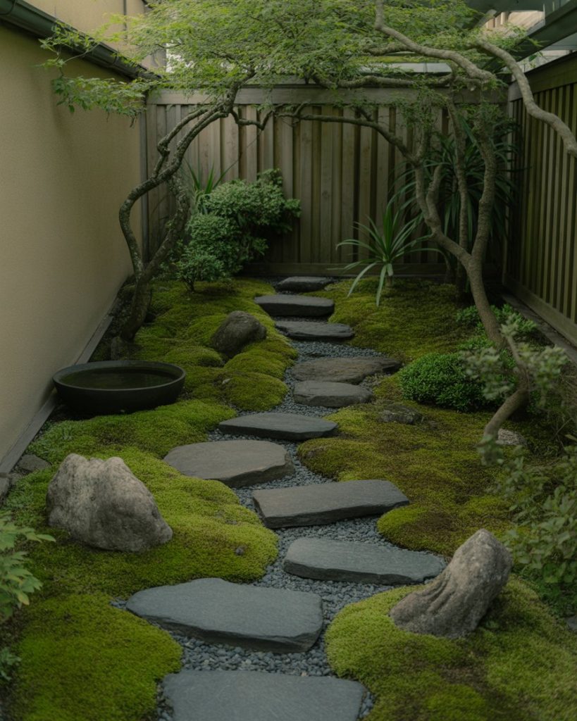 A lush Japanese moss garden is quietly enchanting. By covering stones, steps, and shaded soil with velvety moss, homeowners create serene Zen landscapes that thrive in damp corners. Often combined with stepping stones and trickling water, moss gardens bring intimacy and peace. They are especially practical for shaded backyard spots where grass struggles to grow.