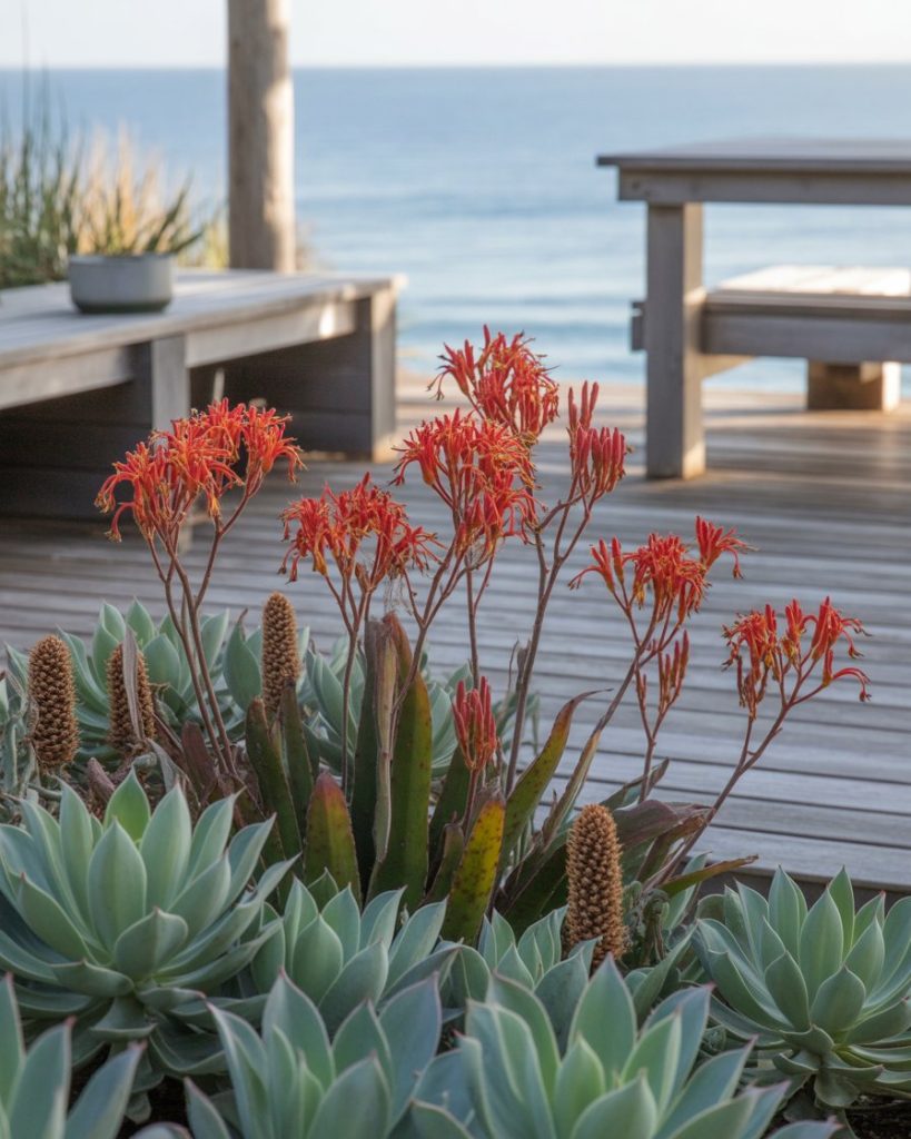 Drawing from Australian native plants, coastal retreats feature grasses, salt-tolerant shrubs, and weathered wood. Kangaroo paw and banksia combine with hardy succulents for a natural seaside look. These gardens echo rugged coastlines while requiring little upkeep, making them ideal for breezy outdoor patios and front yard displays. Their relaxed rhythm feels both wild and contemporary.