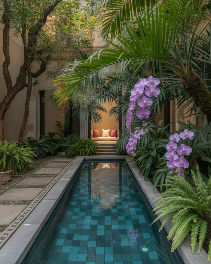 Combining water and plants, tropical pools in courtyards are set to rise. Surrounded by tropical foliage like palms, orchids, and ferns, a reflective pool creates a cooling oasis. This design blends luxury with relaxation, ideal for hot climates or vacation-style living. Designers stress the importance of balance, ensuring water remains a soothing, central feature.