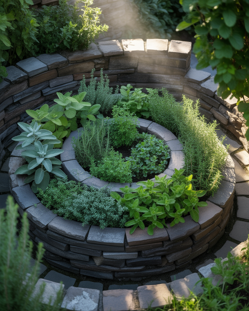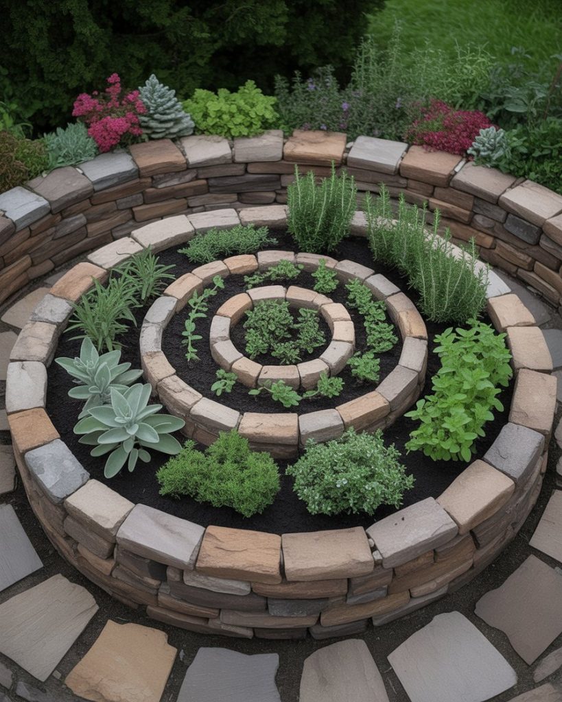 The witch herb spiral is both mystical and practical. Built as a raised spiral bed of stone or brick, it grows medicinal and culinary herbs like sage, thyme, rosemary, and mint. This design makes efficient use of vertical height and microclimates, while embracing folklore traditions. It’s a magical, sustainable choice for eco-conscious gardeners who enjoy ritual and harvest.