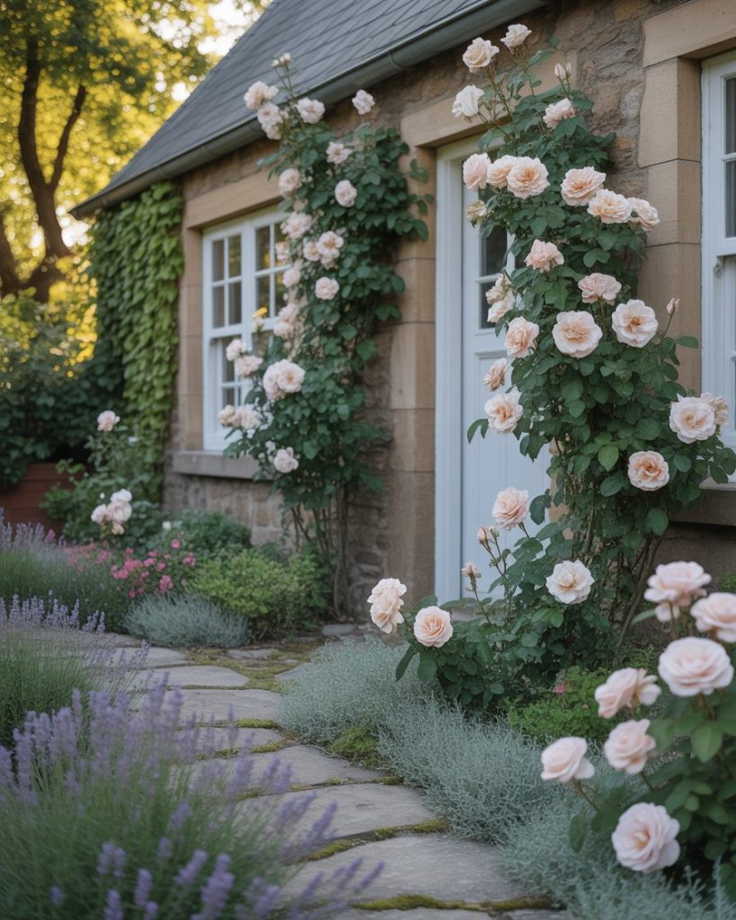 The cottage aesthetic is moving into the front yard. With climbing roses on trellises, lavender borders, and meandering stone paths, it creates a warm welcome for guests. This design blends tradition with modern curb appeal, making the home entrance both charming and inviting. It also supports pollinators like bees and butterflies, enriching the local ecosystem.