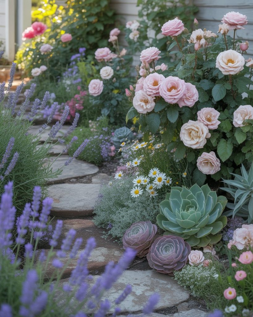 The cottage garden embodies romance and charm, filled with rose varieties, lavender, and wildflowers. By 2026, designers are blending this style with practical choices like succulent borders or drought-resistant plants. Influenced by Piet Oudolf’s planting philosophy, these gardens support biodiversity while feeling cozy and informal. Perfect for both front yard and backyard, they celebrate abundance and nostalgia.