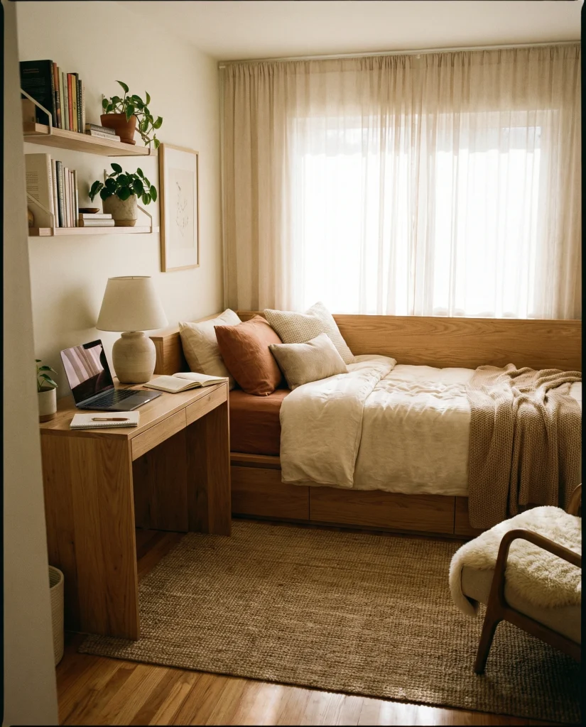 A cozily designed guest room in 2026 would mostly include a daybed office setup. Many homeowners tell me they like their office/lounge with a night bed. A daybed indeed affords functionality during the day and accommodation for guests at night, rendering this reinforcement ideal for small or modestly sized bedrooms. Designers like Emily Henderson frequently think of multifunctional furniture as something pragmatic yet useful.