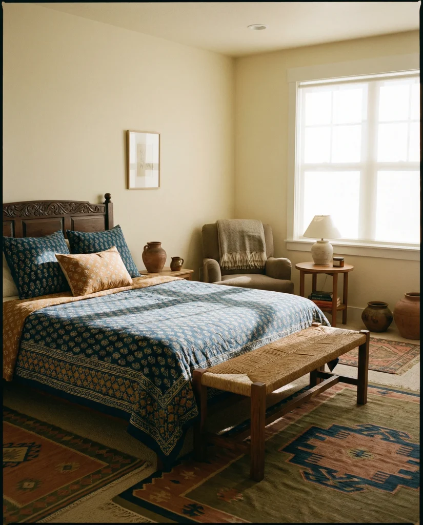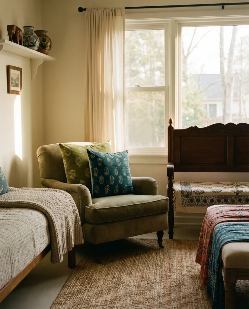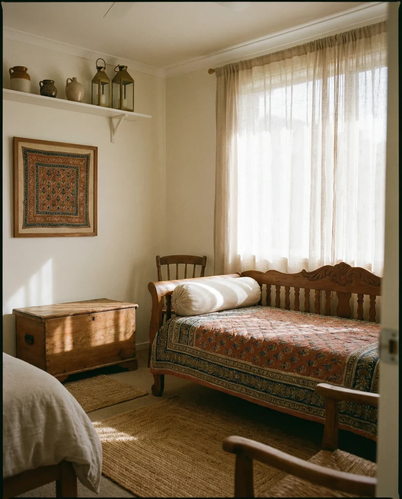 Adding Indian-inspired decor such as this will add so much cultural richness to the guest space—enough to fill forever from the one who stayed in a home where cozy muted-colored hardwood bedding made the room feel very special. Their objective is to keep the blend of contemporary decor and different world influences in sparkling balance and away from becoming kitsch. Various design writers from Architectural Digest are known for loving Indian patterns for adding soul into more contemporary surroundings.
