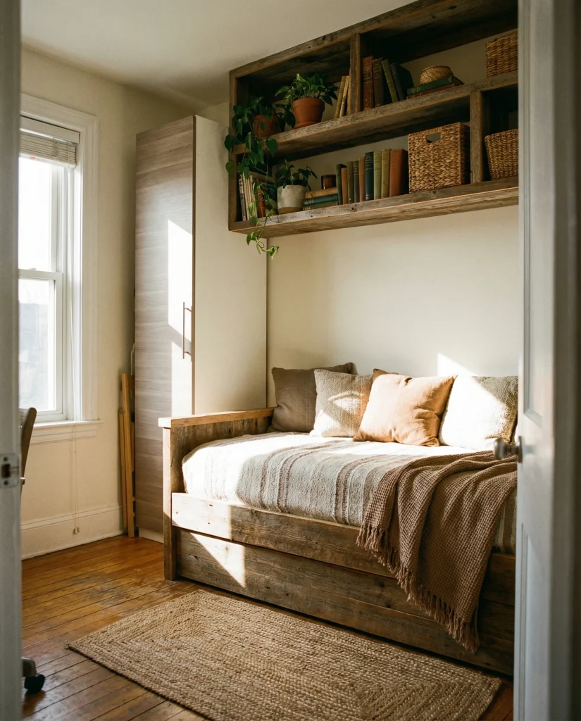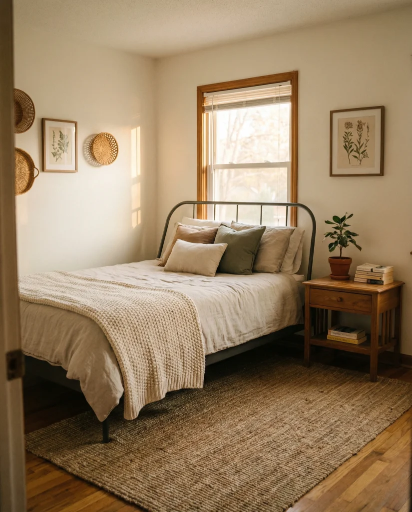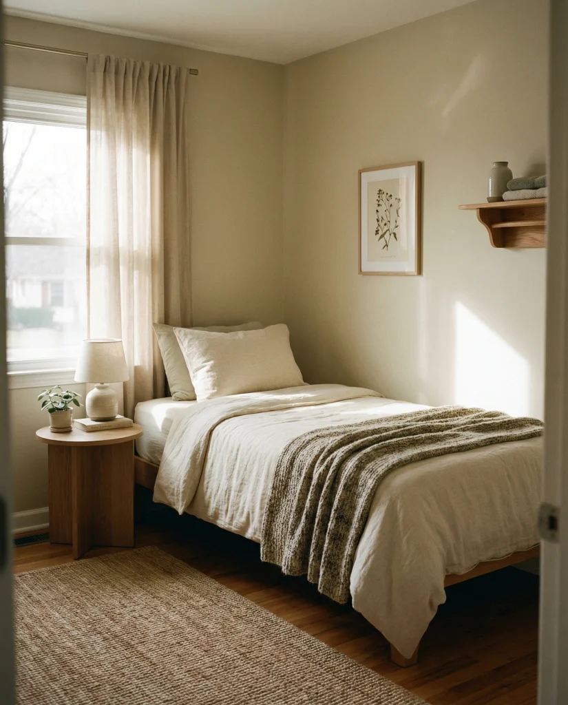 A twin bed remains a favorite for a budget makeover, especially in tiny or small bedrooms. I’ve noticed that many readers appreciate how a single, well-decorated bed frees up floor space while still feeling warm and welcoming. Pairing it with simple decor and soft textiles creates a calm environment guests enjoy. Experts on Apartment Therapy often mention that a smaller bed can make a room feel bigger when styled intentionally.
