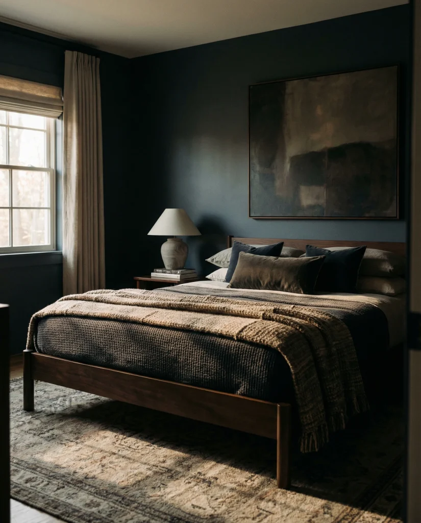 Blue tones are trendy for 2026 guest rooms for their relaxing quality that doesn’t overwhelm the guest’s overnight stay. Regularly, I hear from these readers on how comfortable their ‘whisper’ blue rooms sometimes feel for their guests. Soft navy, denim, and sky behave like a backdrop to modern furniture and natural textures. Experts from Benjamin Moore often emphasize the ability of blue to allow guests to let go of travel-induced tension much more easily.