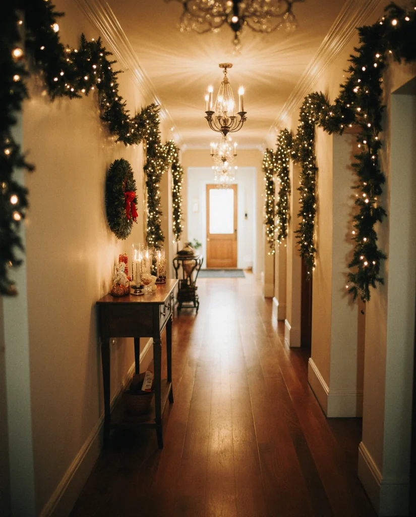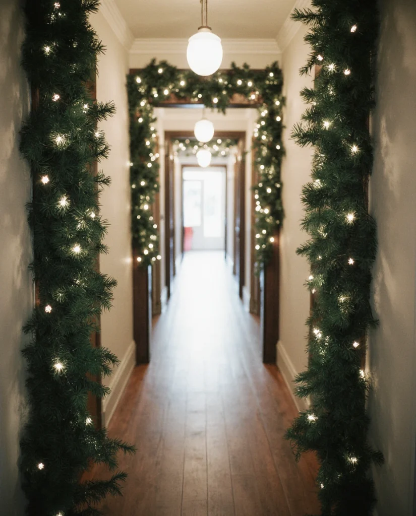 For many Americans, decorating a long narrow hall for Christmas is a tradition. Americans who grew up with festive school corridors and now recreate that feeling at home. Soft colors, garlands, and warm lights make even the tightest of corners feel inviting, like a warm hug. This decor style works well with small apartments, two-story homes with long upstairs stretches, and even entryways that need a touch of seasonal charm.