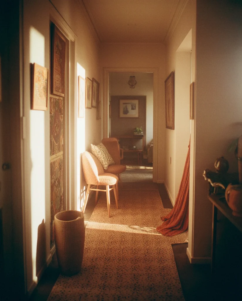 An apartment hallway benefits from an earthy boho palette—warm browns, woven textures, and soft greens. This style helps a narrow layout feel natural and relaxed. It’s particularly appealing for renters who want approachable decorating ideas that add personality without permanent changes.