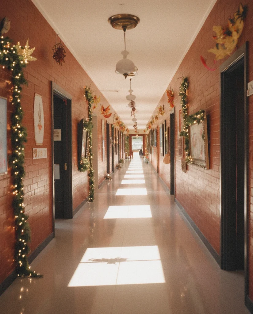 Adults often enjoy recreating nostalgic school hallway looks—autumn leaves, winter Christmas school motifs, or spring pastels. This style adds warmth to both long and narrow halls, tapping into collective memory while staying modern. It’s subtle but brings joy to transitional spaces.