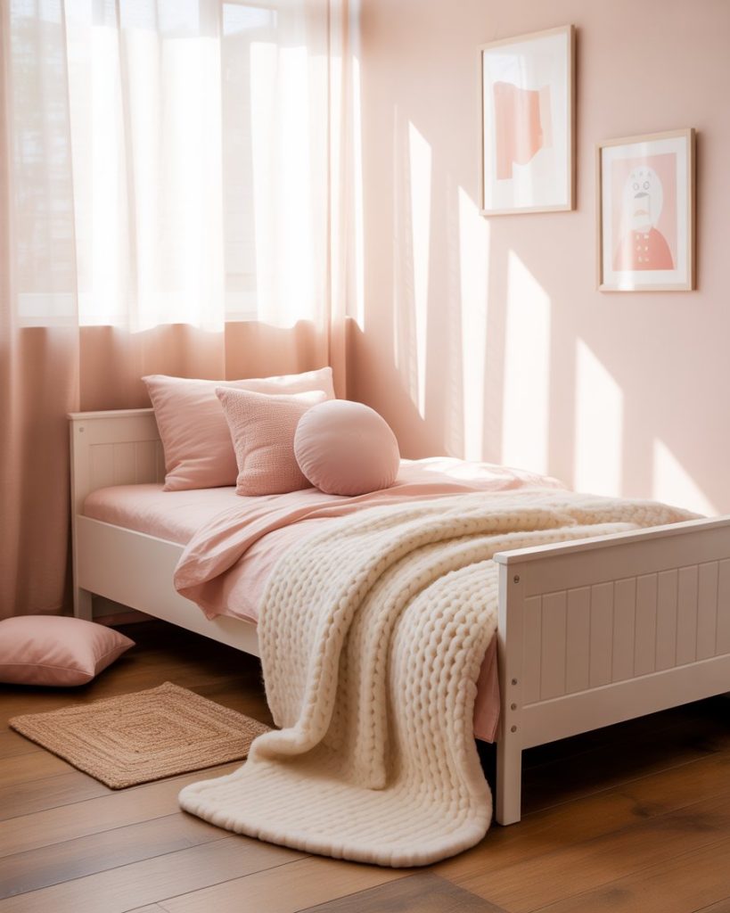 Good-old pink rooms for families with a penchant for gentle charms can feel both timeless and modern alike. From pastel blush walls to rather bold rose accents, it sets up a warm and cute environment particularly for little children. Drawing inspiration from Ikea minimalism keeps this light and airy, and the pairing with layered textures takes its luxury feel up a notch without ever making it too much. This idea creates a good balance between gentle femininity and functional design.
