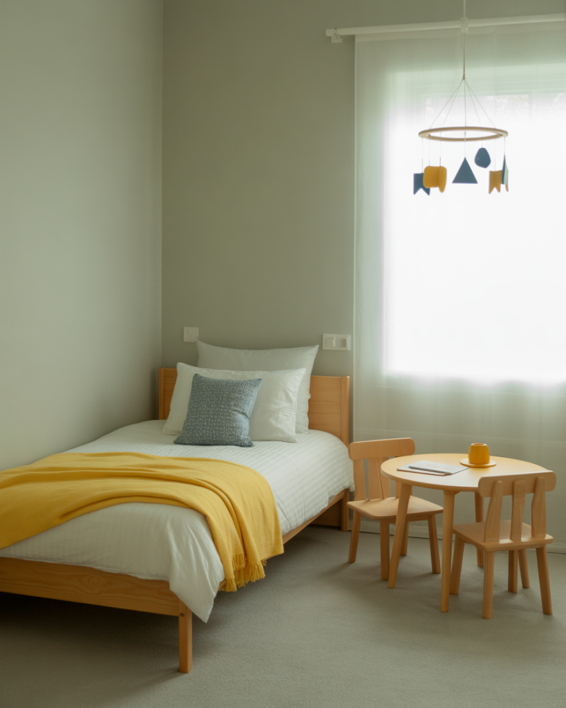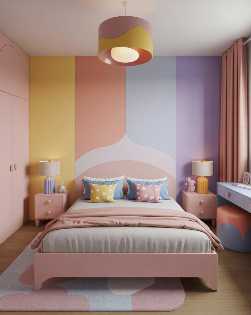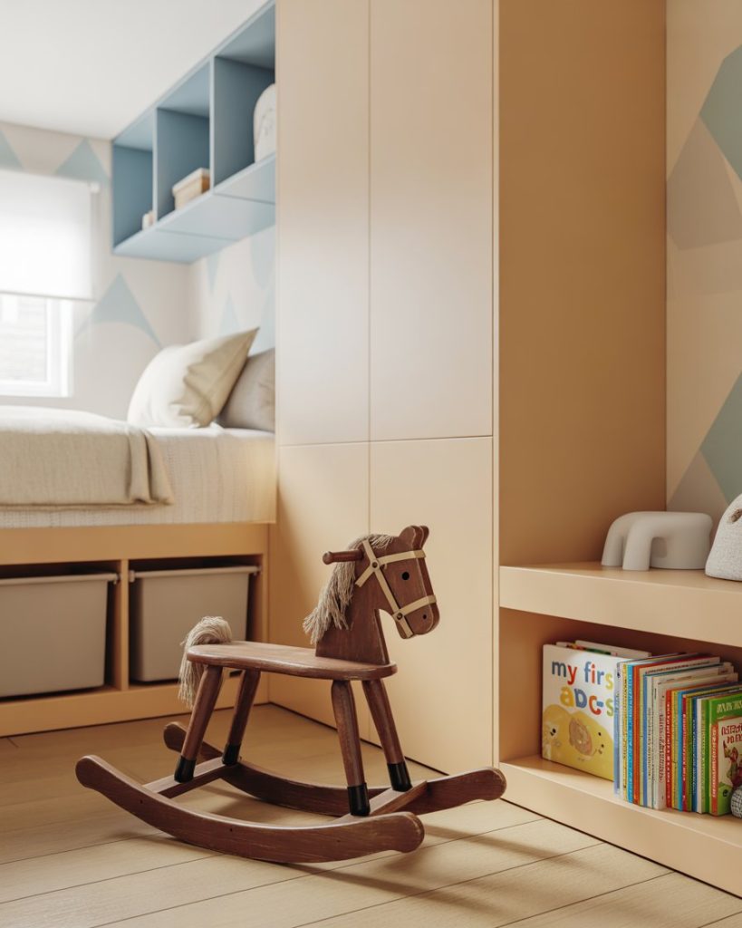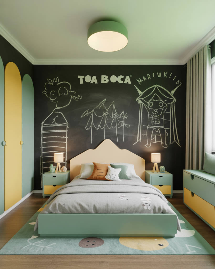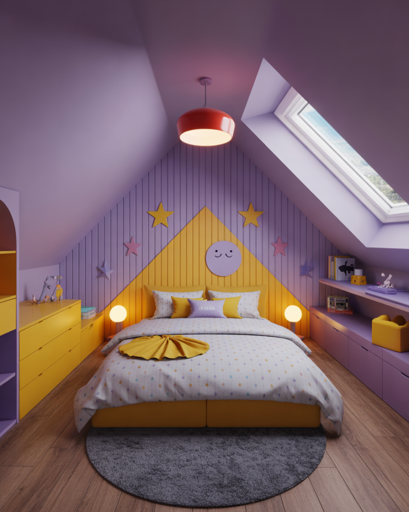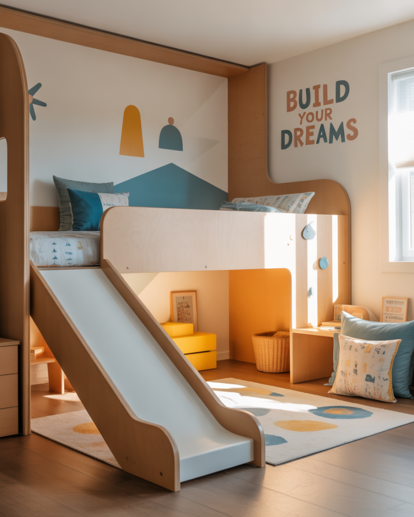 For some families, fun and imagination come first. By building a playful setting inside the room-a small tent nook, a chalkboard wall, or a climbing corner-this turns day-to-day living into wild ventures. The tonic boca-inspired colorway of bright yellow, purple, and blue stimulates energy and creativity. Although it does not scream luxury, the value of joy and engagement that this style builds is priceless for a child’s developmental nurturance and happiness.