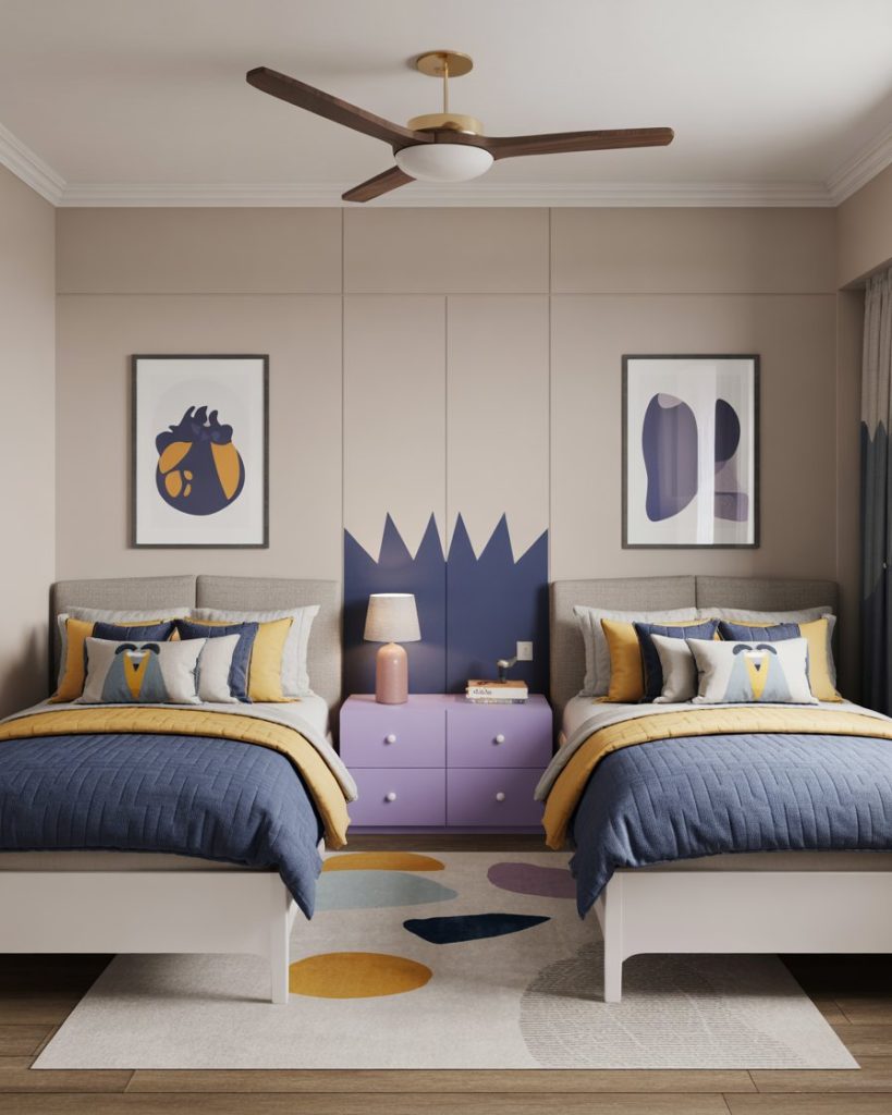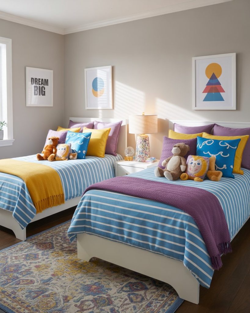 A little bit of magic is needed in the design of a shared space or shared room 2 so that both kids feel described by their spaces. Neutral bases are used, then individuality shines through with bedding, art, or rugs. A few accents in blue, yellow, or even purple define each child’s area. Designers such as Emily Henderson love to stress symmetry with two beds, balanced shelving, and equal lighting so that the area maintains itself into a bon voyage zone where fun remains in conflict.
