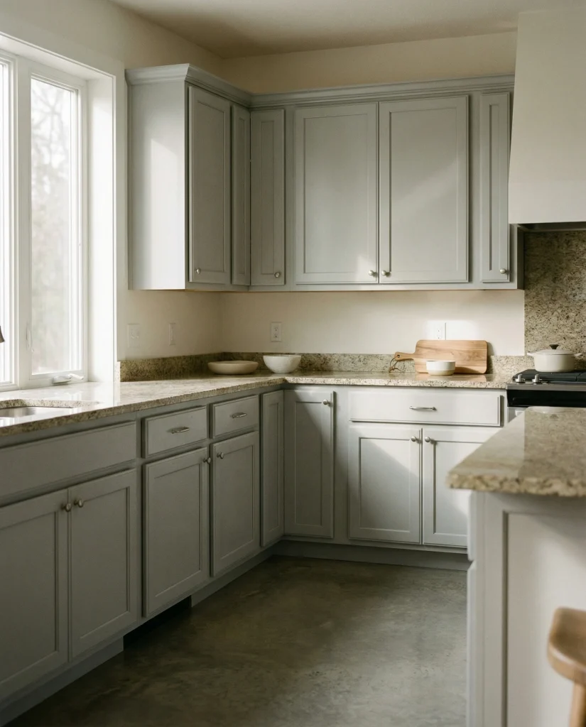 Soft cloud gray cabinetry offers a sleek but approachable neutral for 2026. It works with concrete floors, dark granite counters, or light wood floor planks. Many homeowners choose it for its flexibility—gray can lean warm or cool depending on lighting, making it a reliable painted choice for evolving styles.