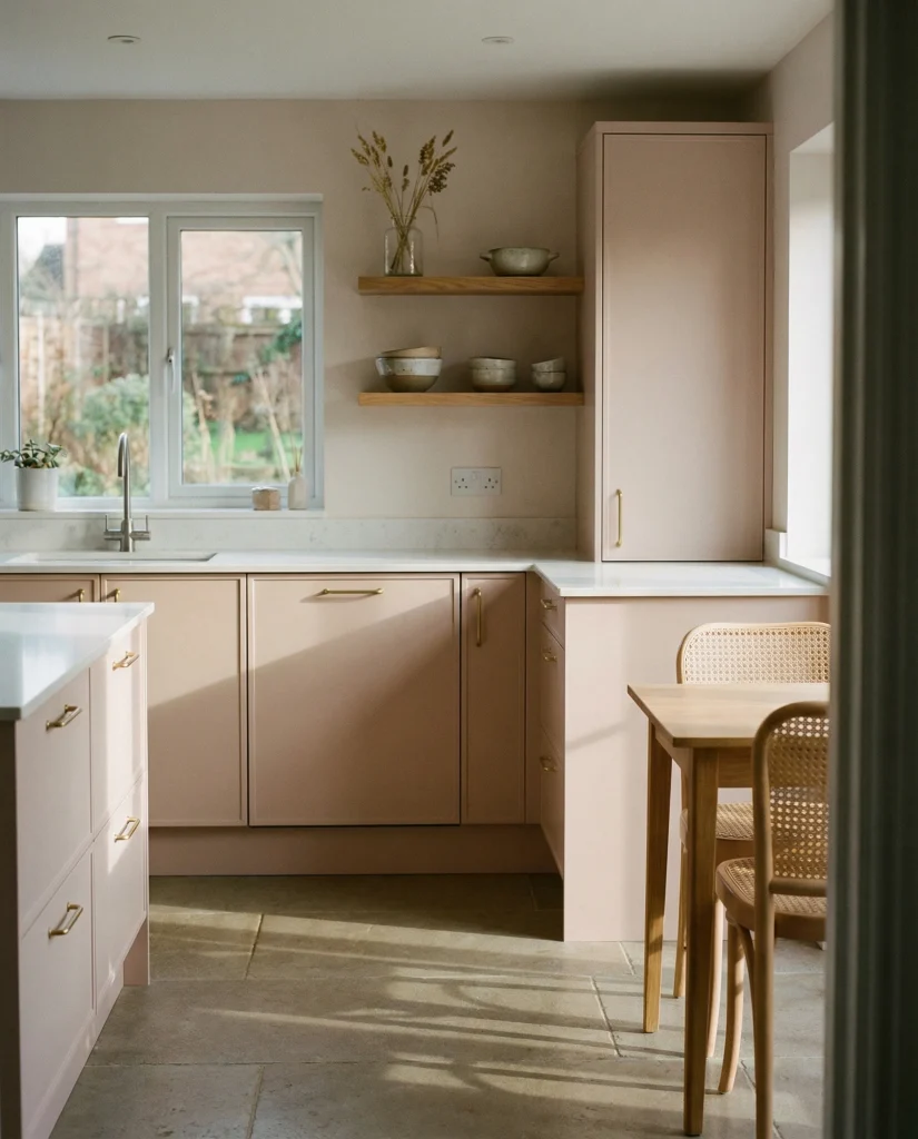 Subtle blush, albeit predominantly a white-leaning neutral, may also promise an element of warmth without becoming pink. Design resources pair this shade with white counter surfaces, including light wood and subtle tone variations. It is for a small nook that wishes to eat while rain falls on the rooftop. Most lifestyle bloggers can see this color underscore hope in bright harmony.