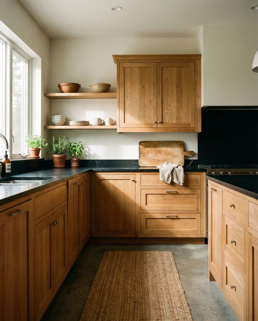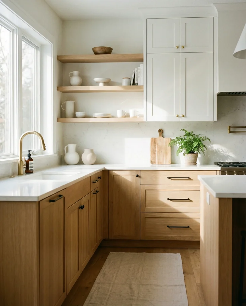 Honey-toned wood cabinetry is returning for those craving warmth without dark heaviness. It pairs flawlessly with butcher block counters, cream accents, and dark brown floor finishes. Honey tones feel friendly, nostalgic, and perfect for families seeking personality and practicality in their design.