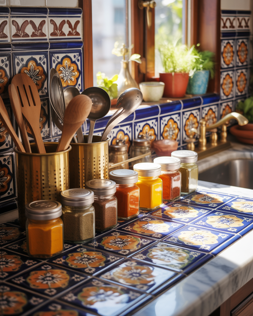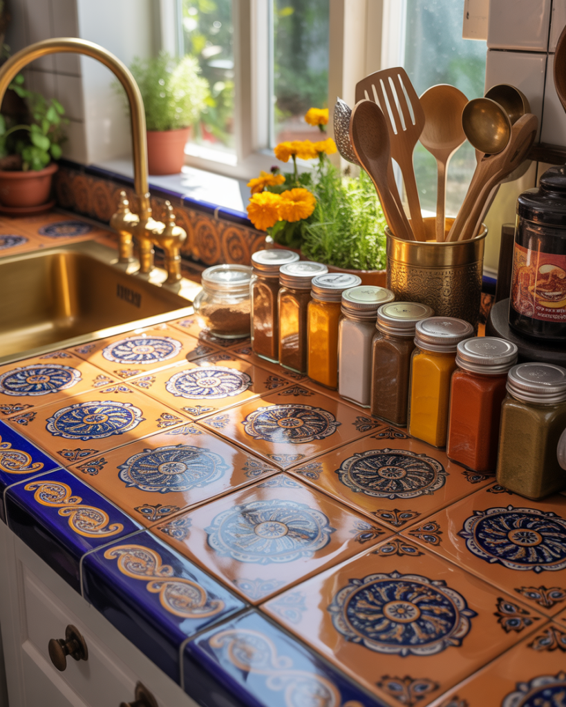 If you love color and craftsmanship, draw on Indian influences for your countertop decor. Hand-painted tiles, brass utensil holders, and bold spices in glass jars bring soul and warmth. Ideas Indian decor celebrates pattern and life—perfect for anyone wanting a lively, welcoming kitchen space.