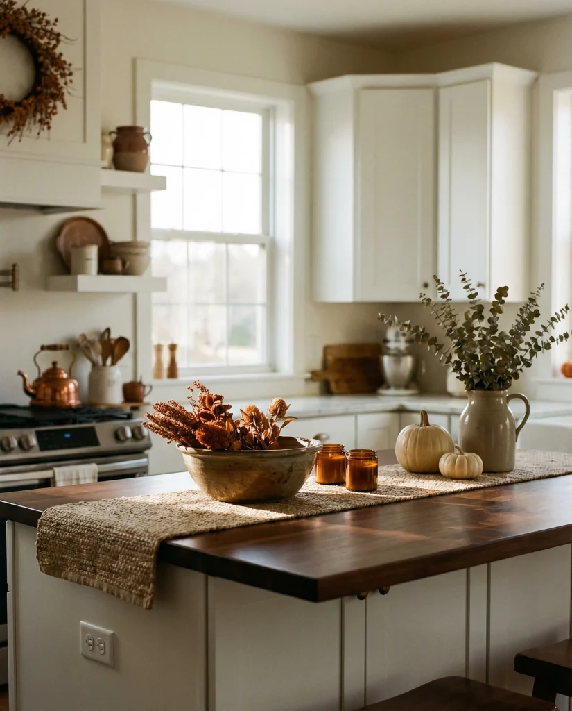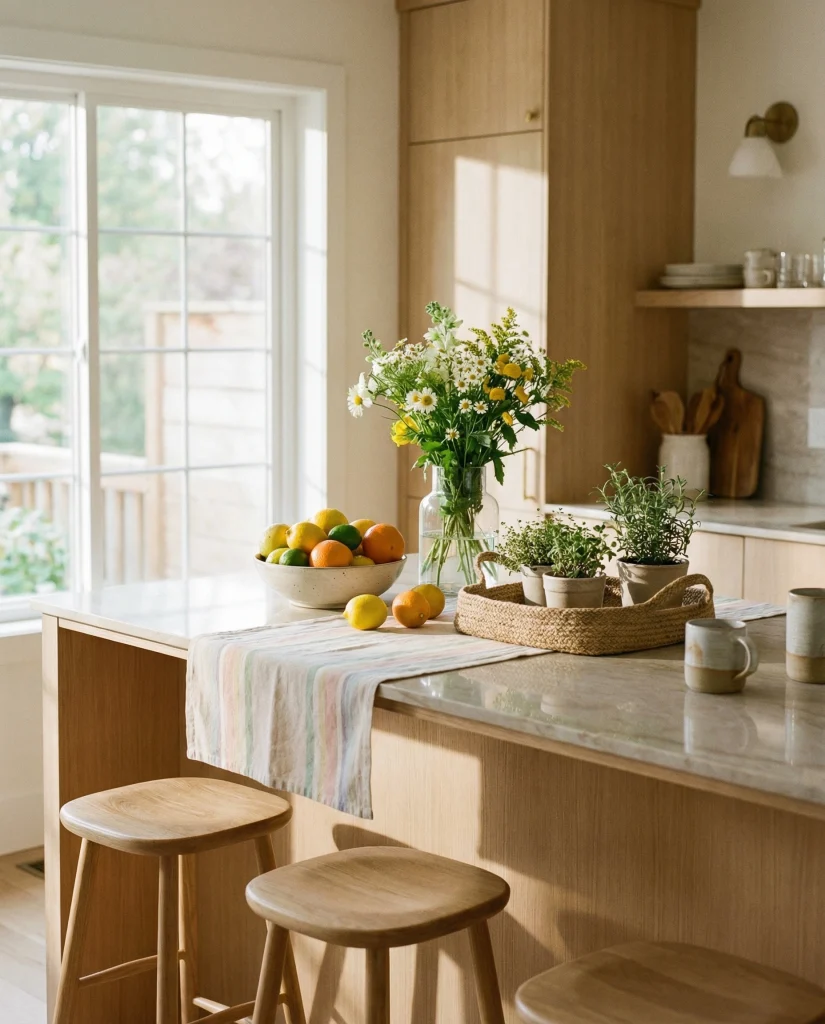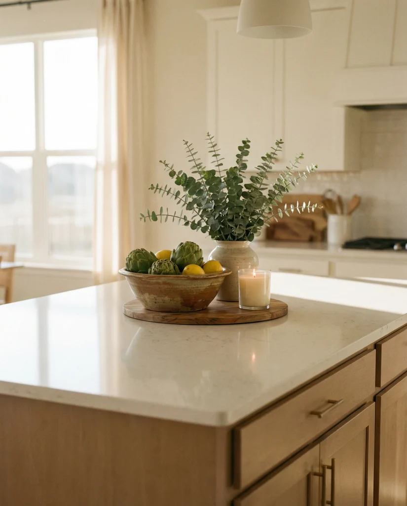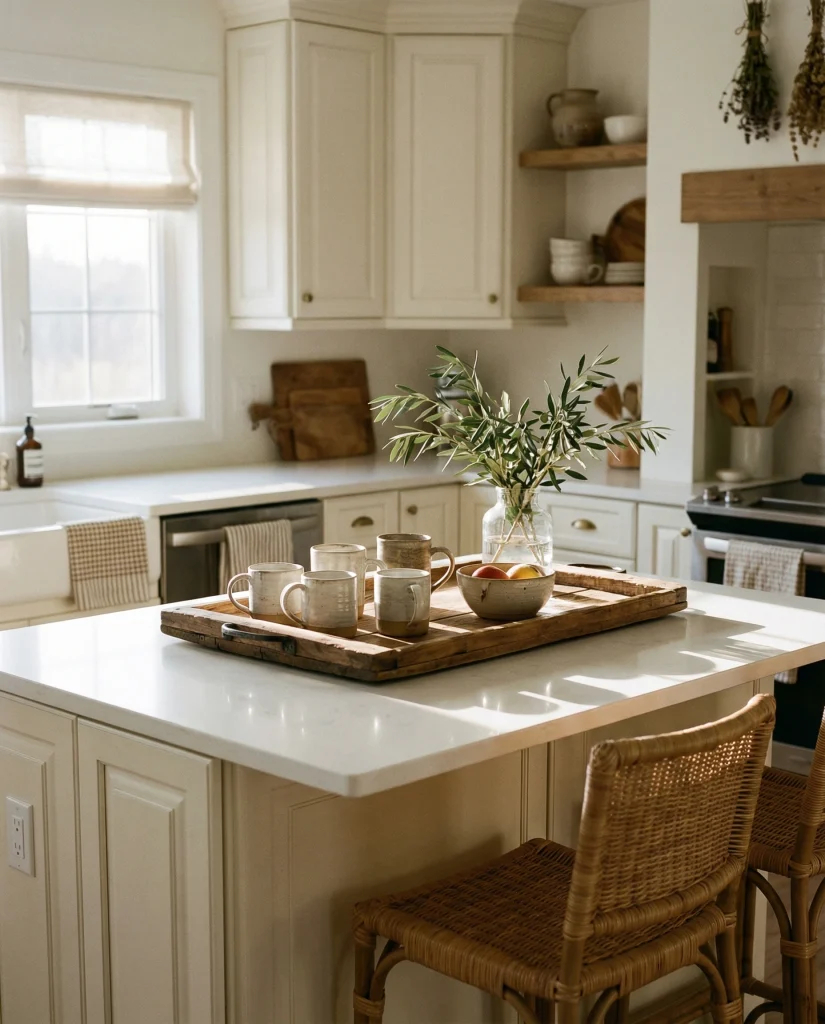 Kitchen Island Decor 2026 ideas for seasonal centerpieces, trays, textures and modern farmhouse styling