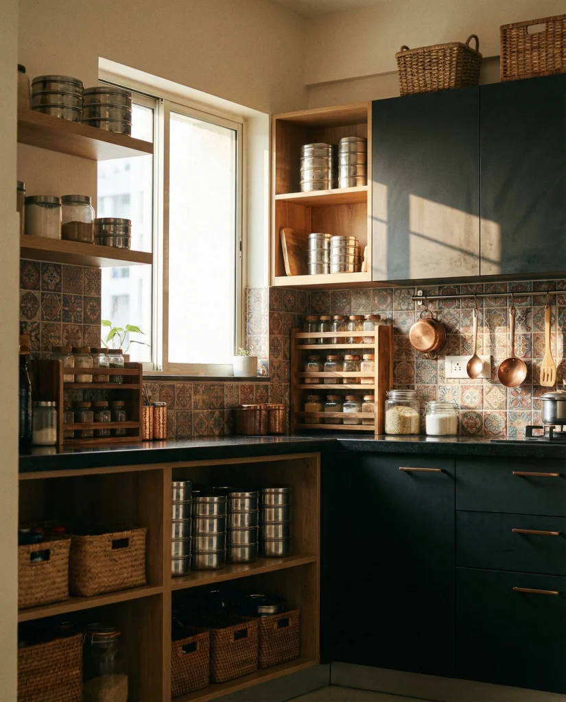 Indian cooking always combines spices, grains, and specific cookware, reflecting a number of organizing strategies that also breathe life into anybody’s kitchen. Folks would usually employ stainless-steel containers, tiered racks, and deep cabinets to have ingredients ready for everyday meals. A system like this works well for those who love to cook and do it quite often.