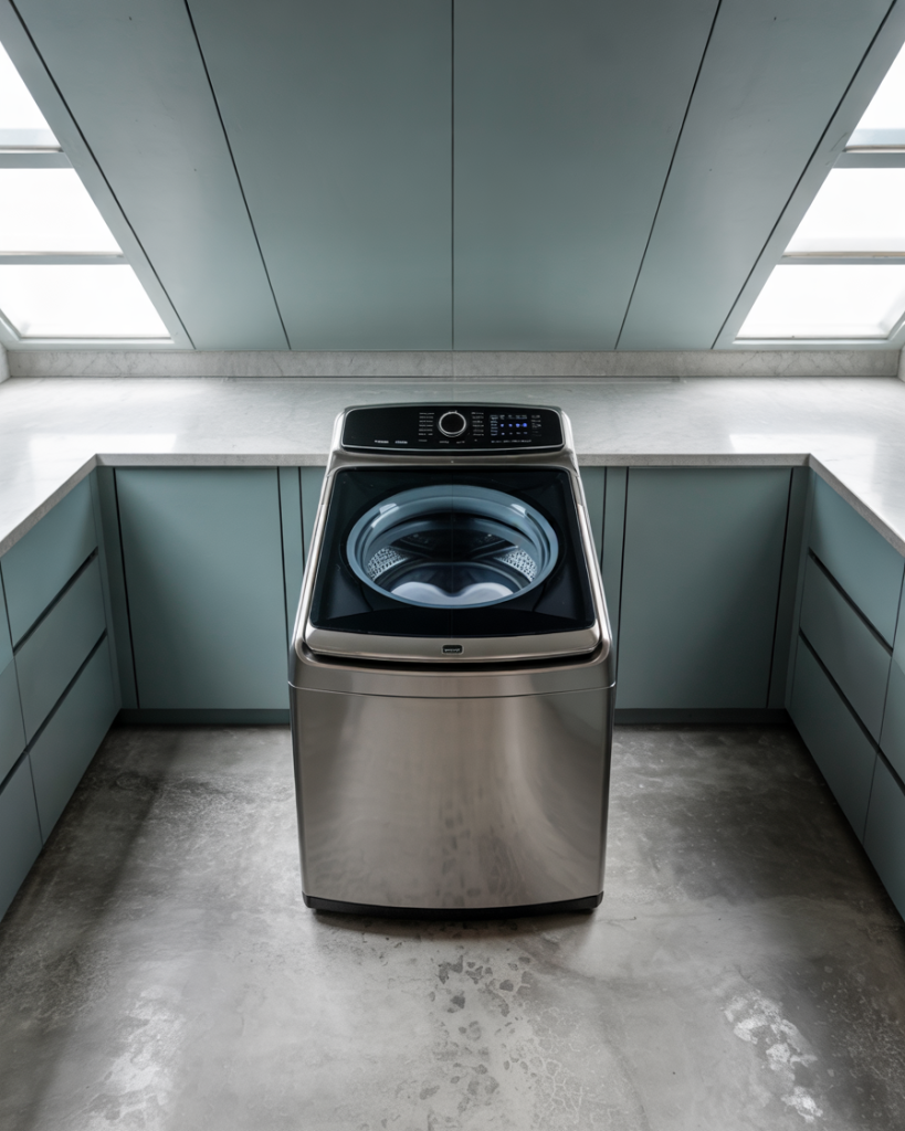 Modernize your laundry experience with a high-tech setup featuring Wi-Fi-enabled top load washers, smart dryers, and automated lighting. Great for large homes or tight small space zones—technology adds ease without sacrificing style.