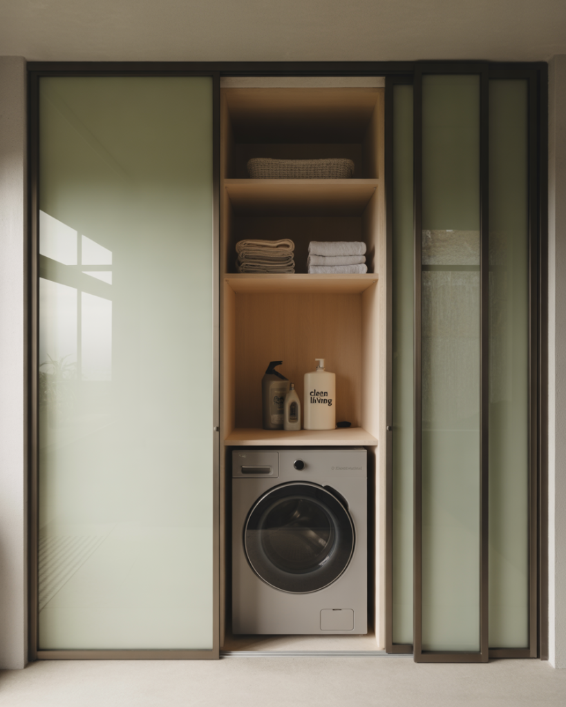 Turning a closet into a laundry zone is common in apartment living, but it doesn’t have to feel cramped. Add shelves, slim cabinets, and pull-down drying racks for maximum storage. Sliding doors or curtains can hide the area, keeping the rest of the room neat. Even with a top loader, folding products like compact ironing boards help maintain efficiency in a tiny space.