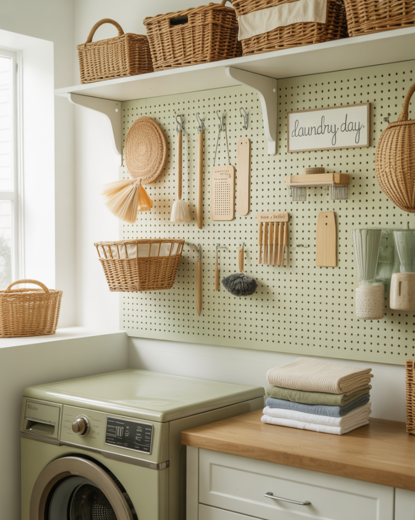 A diy pegboard is one of the most versatile ideas storage enthusiasts swear by. By hanging products, brushes, or even small baskets, you free up countertop space while keeping tools accessible. Pegboards work wonders in basement laundry rooms where walls are often bare, but they’re equally effective in a small space. Many decorators call this the perfect blend of function and aesthetic charm.