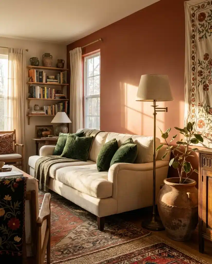 American homeowners—particularly those in the Southwest and those influenced by Anthropologie-aesthetic sensibilities—have been gravitating toward this palette for years, but 2026 has brought it firmly into mainstream design conversations. It’s also one of the friendliest colors to live with long-term: unlike moody darks that can feel oppressive in the wrong light or cool blues that fight warm artificial lighting, terracotta and rust genuinely improve in most lighting conditions. Morning light makes them glow; evening lamplight makes them smolder. It’s a color that works hard for you around the clock.