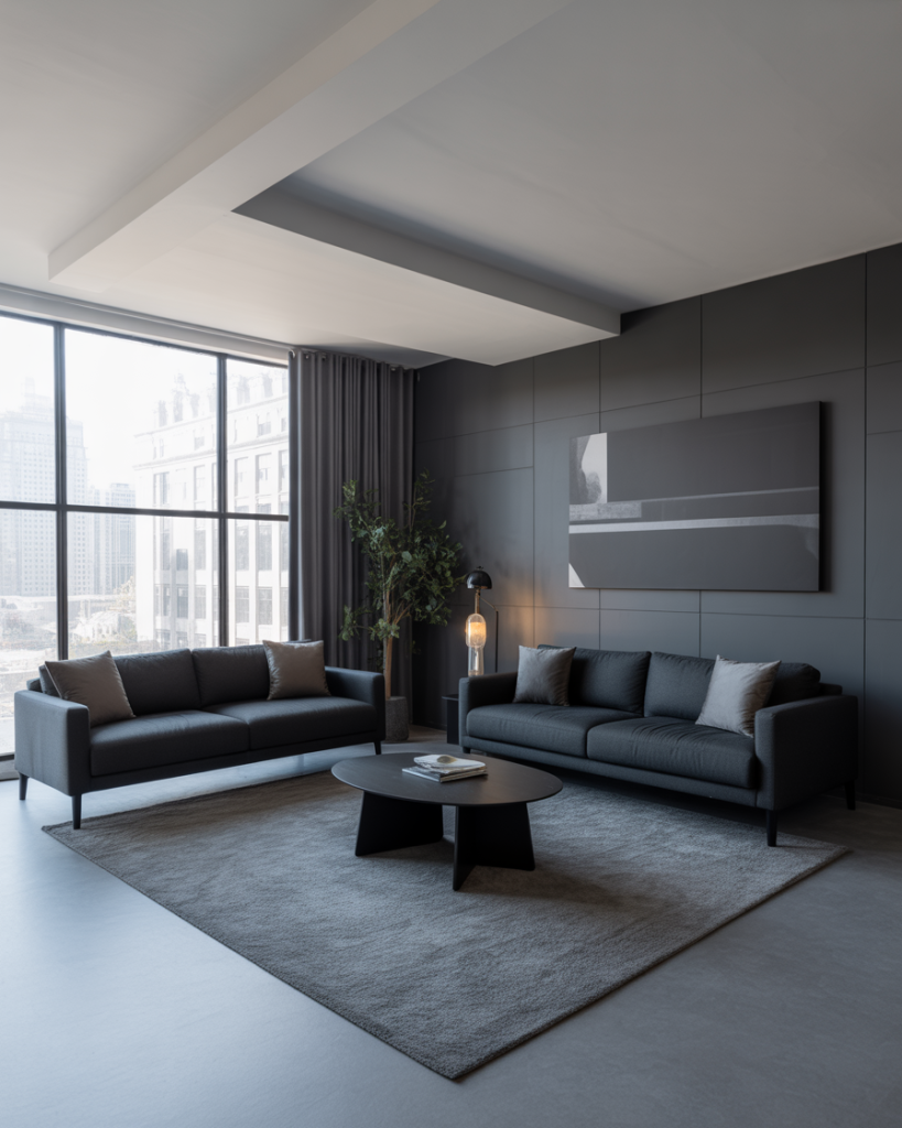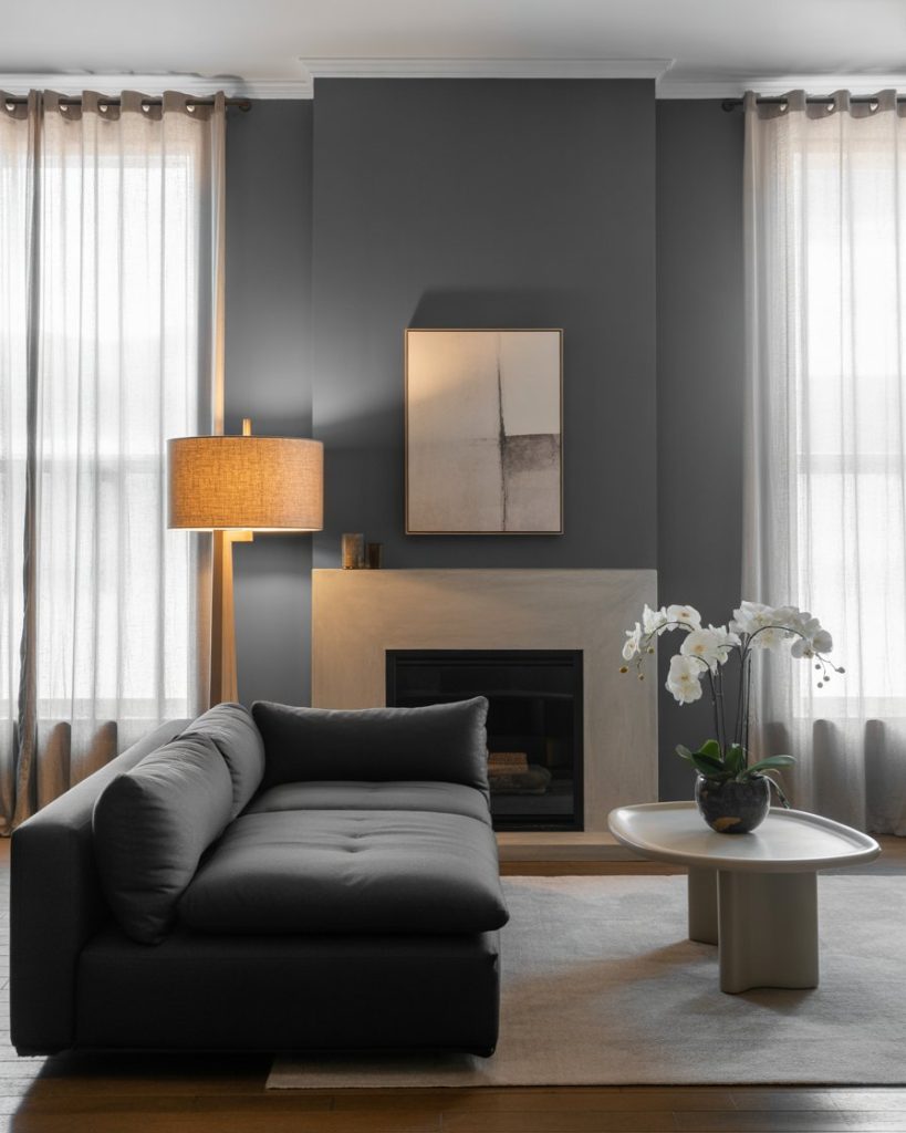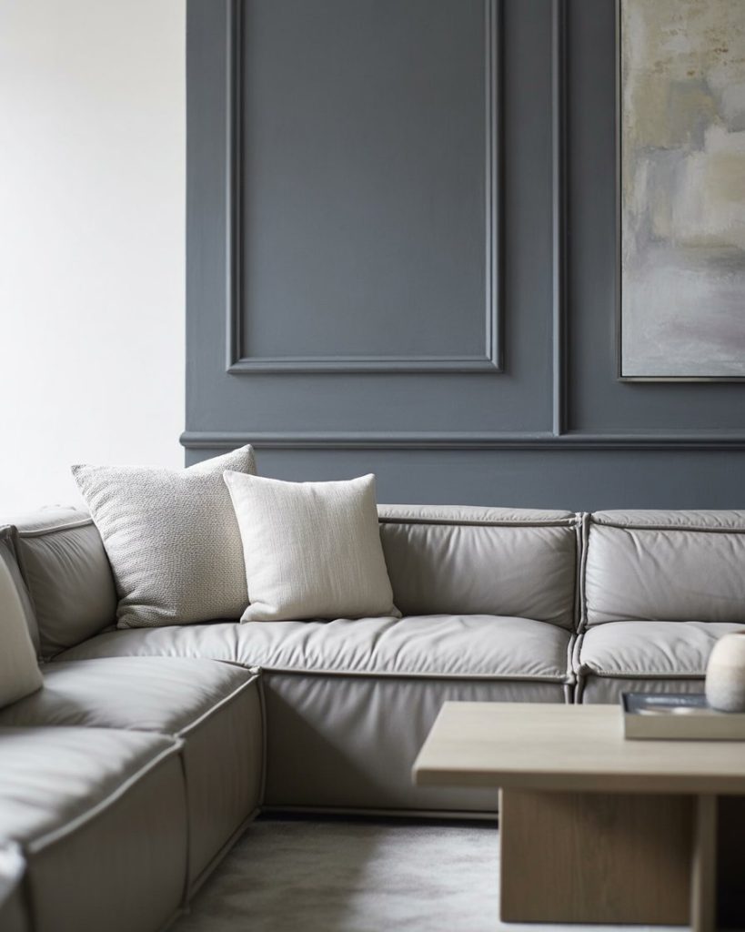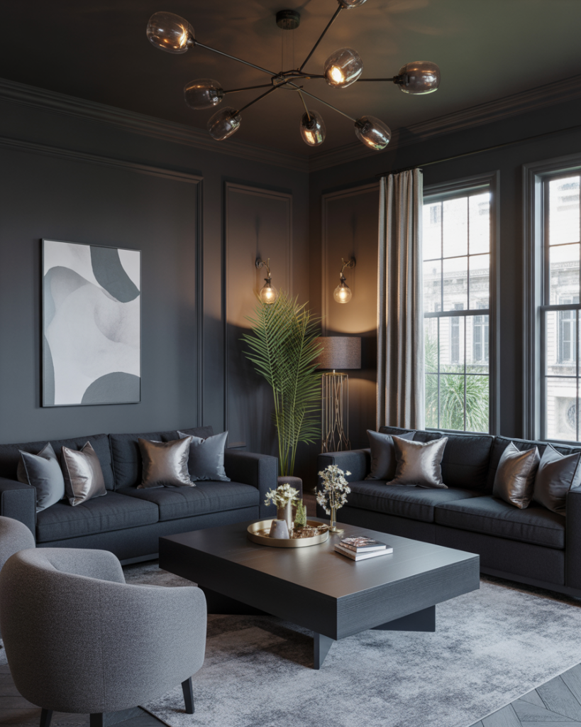 Charcoal walls introduce sophistication and pair naturally with accent wall dark furniture sofas in deep tones. This bold color adds a sleek, modern feel, especially when offset by metallics like brass lamps or chrome frames. Behr has included deep greys in its 2025 forecast, encouraging homeowners to embrace darker palettes for character. Charcoal works especially well in larger rooms with plenty of natural light.