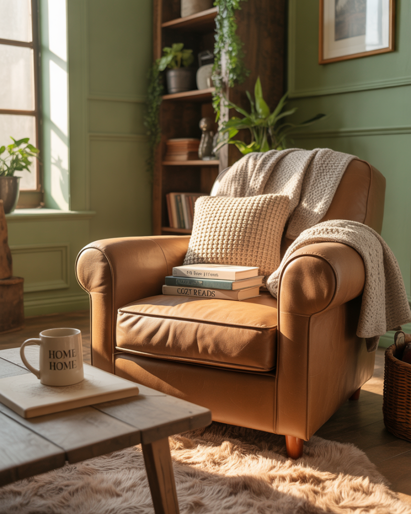 Soft sage green is a neutral yet refreshing choice that bridges modern and nature-inspired design. It works beautifully with brown furniture or a red brick fireplace while adding a serene feel. This shade is especially nice for small spaces cozy layouts because it doesn’t overwhelm. Many designers, including Studio McGee, note that sage can read both modern and rustic, making it highly versatile for American living rooms.