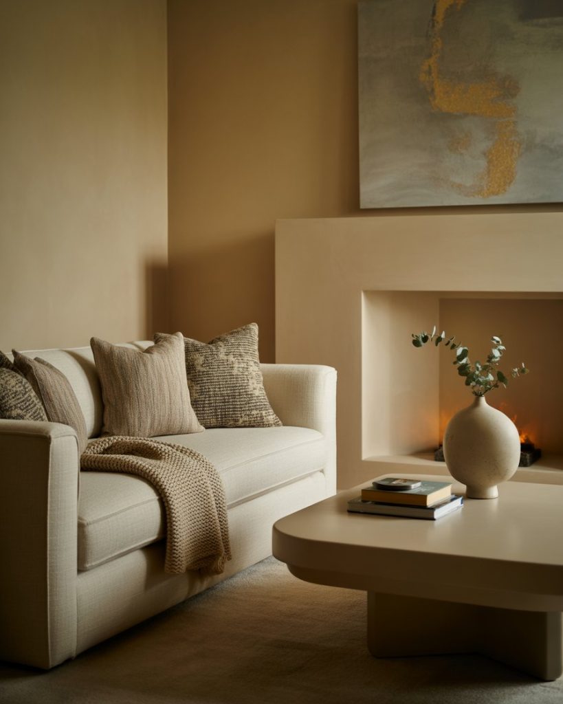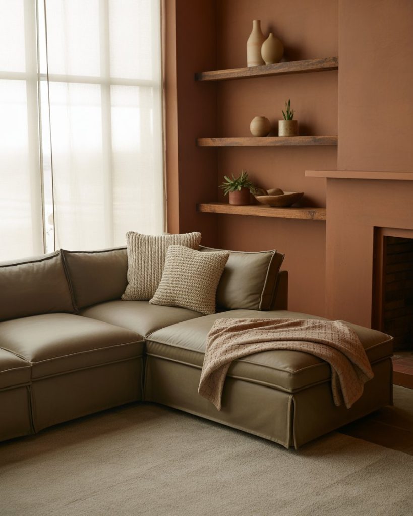Earthy tones remain a go-to for creating a warm, cozy space that feels rooted and calming. Shades like clay, sand, and soft taupe harmonize with light brown wood floors or brown furniture. Influencers like Emily Henderson often recommend these hues for family rooms because they are both stylish and forgiving of everyday life. This palette works particularly well in rustic interiors where natural light meets organic textures.