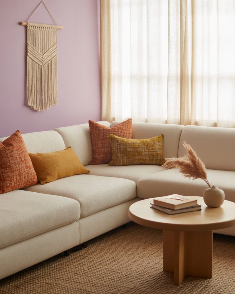 Soft lavender is a less-expected choice that can make small spaces cozy while still feeling bright and airy. It works especially well with boho décor, layered textiles, or even accent wall dark furniture sofas to balance sweetness with strength. Lavender is also becoming popular in modern palettes as designers embrace subtle pastels for sophistication.