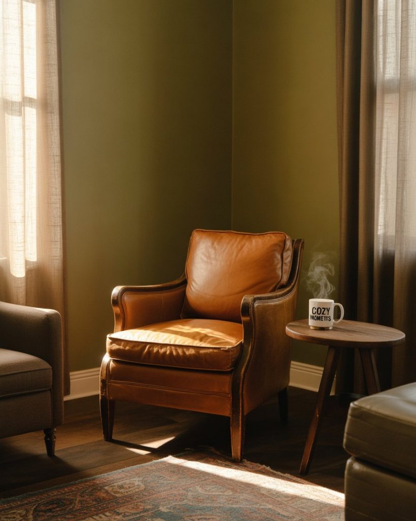 Olive green provides a grounded, earthy vibe while staying neutral enough for versatility. It pairs beautifully with dark wood floor finishes and brown furniture, evoking a nature-inspired, rustic elegance. Designers like Joanna Gaines often lean into olive as a transitional shade that feels sophisticated yet casual. It’s ideal for creating a calm retreat in the home.