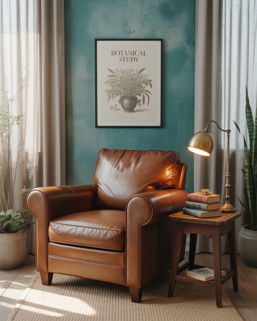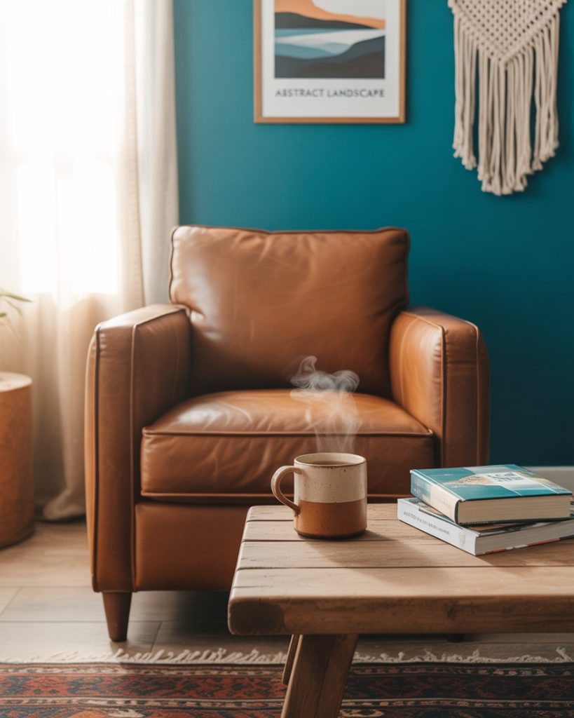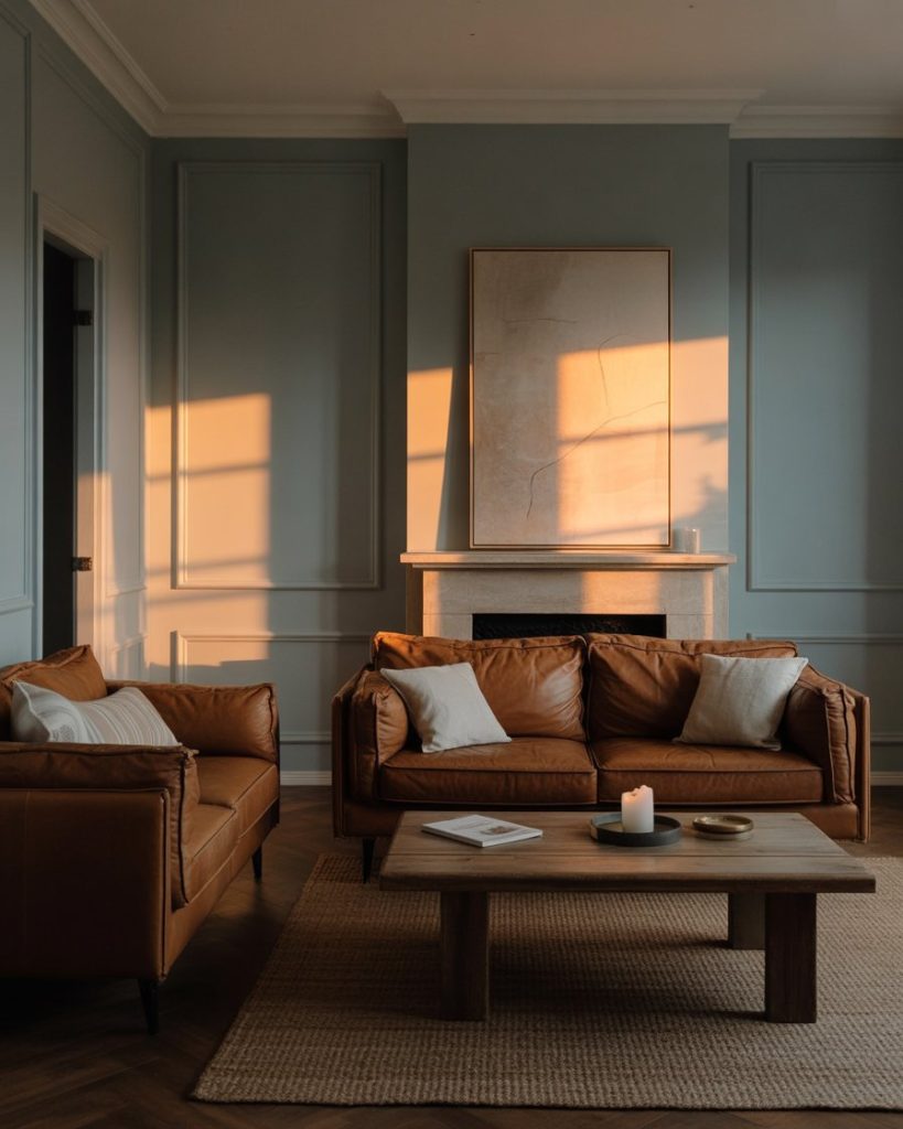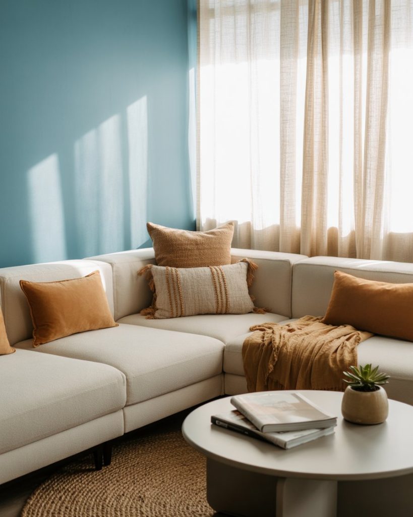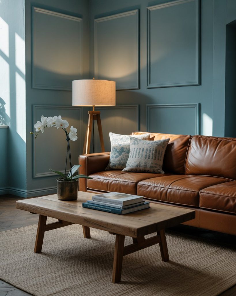 The mix of blue walls with brown furniture has stood the test of time. This combo feels cozy yet bright, thanks to the calming energy of blue and the grounding weight of wood or leather. Designers at Better Homes & Gardens note this as an ideal choice for families—it hides wear while looking polished. It works with both rustic and modern settings, adapting seamlessly.