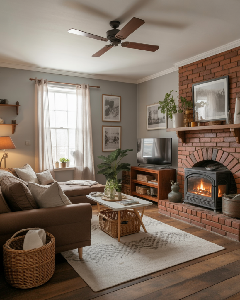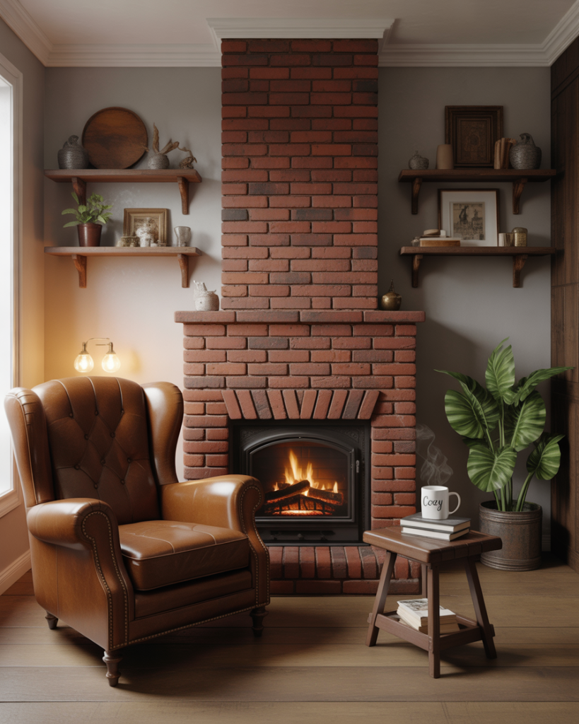 A red brick fireplace makes a natural focal point, and the right paint amplifies its charm. Designers often recommend grey or neutral walls to let the brick stand out, while accenting with brown furniture for cohesion. The mix brings in a rustic charm without feeling dated. It’s a design touch admired by Remodelista, proving that brick and paint can coexist beautifully.