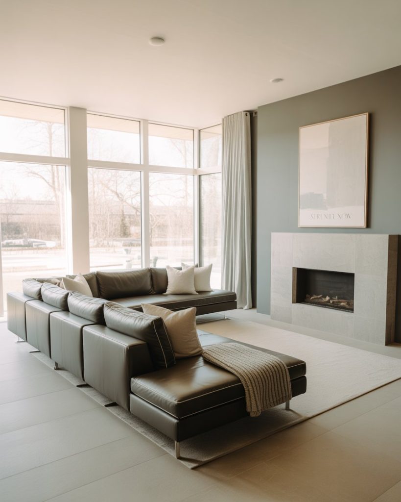 For large open-plan living rooms, sticking with a neutral base offers flexibility and timelessness. Soft greys, creams, or taupes allow you to shift decor as trends change. A grey accent wall gray couch feels right at home here, especially when paired with modern clean-lined furniture. Designers like Nate Berkus often recommend this approach for its balance between style and practicality.