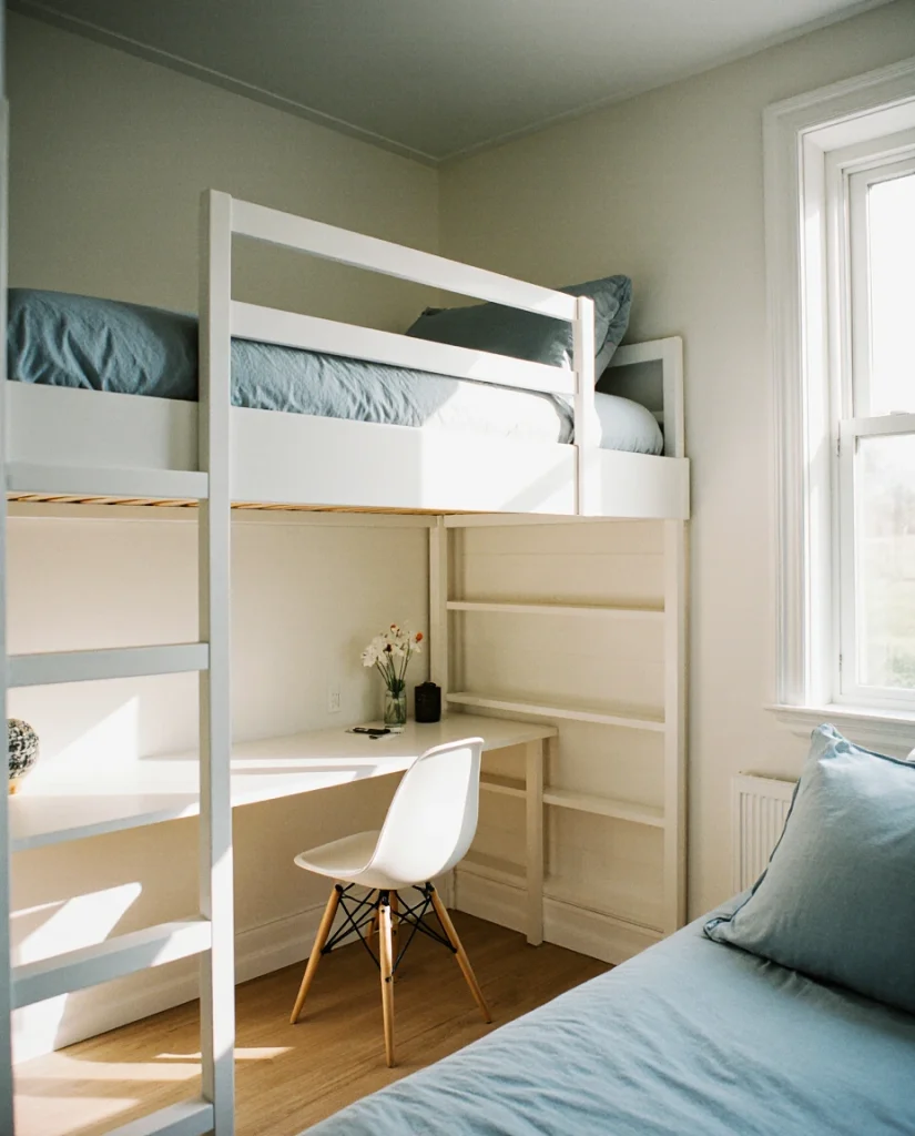 Budget-conscious families in cities like Austin and Denver have embraced this solution as housing costs rise and square footage shrinks. A well-built double loft system typically costs between $800 and $1,500, significantly less than adding square footage to a home. The underneath space often becomes a shared homework zone or play area with a small table and storage cubes, teaching kids to keep communal spaces organized while giving each child their own elevated sleeping territory.