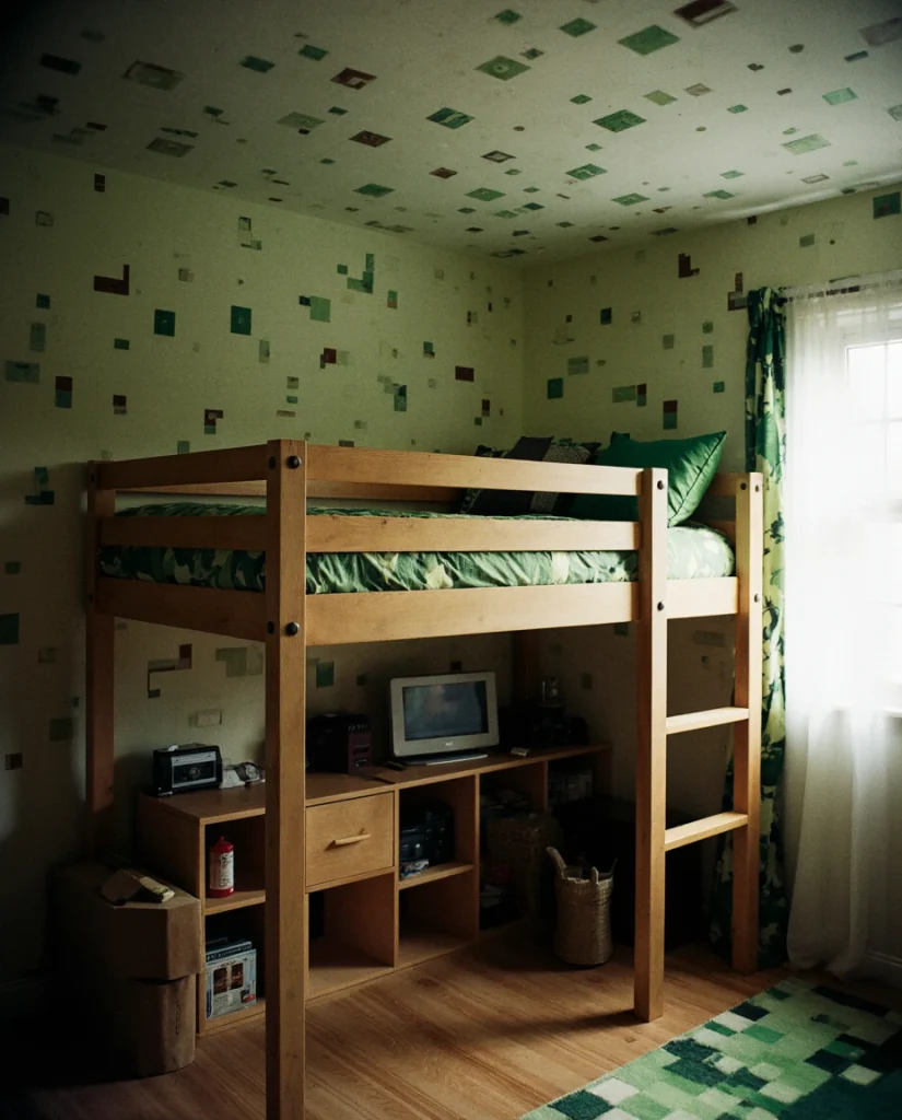 For children obsessed with Minecraft, a themed loft bed brings their favorite game into three-dimensional reality through blocky design elements and pixelated décor touches. Some parents DIY these setups by painting wooden frames in grass-block green with brown accents, adding cube-shaped storage bins, or incorporating LED strips that mimic the game’s torch lighting. Commercial options exist too, with modular cube-based designs that echo the game’s signature aesthetic while still functioning as safe, sturdy sleeping spaces.