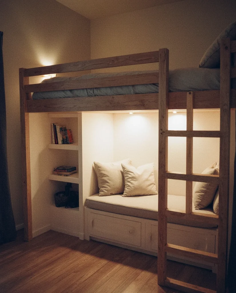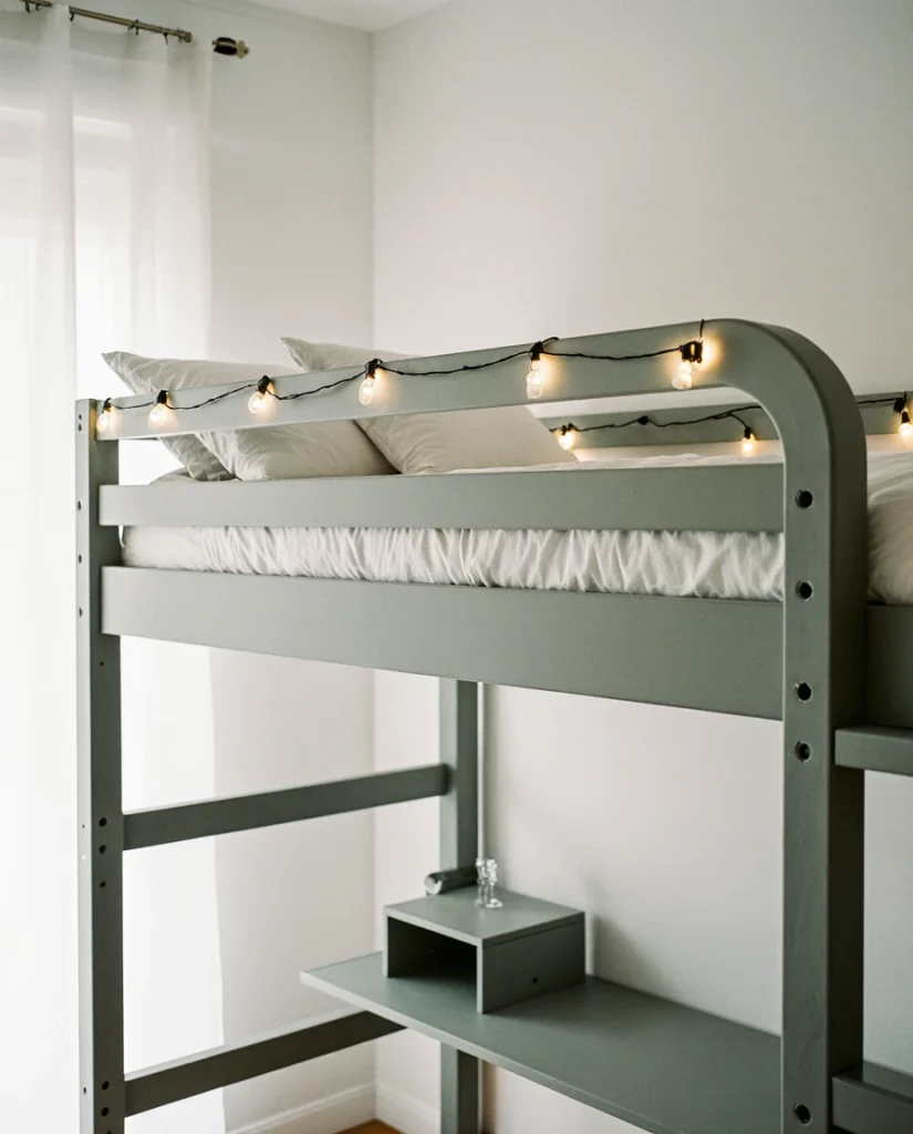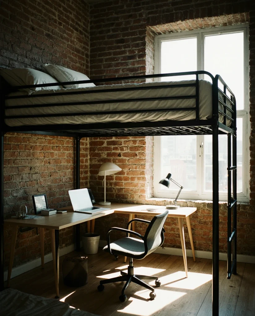 A designer I spoke with in Portland mentioned that her clients often underestimate the power of good lighting in loft bed setups. She recommends installing a dimmer switch or using warm LED strips around the bed frame perimeter, which creates ambiance without harsh overhead lights. This matters especially in studio apartments where the loft bed occupies the same visual space as your living area—soft, controlled lighting helps mentally separate sleep space from daily activities.