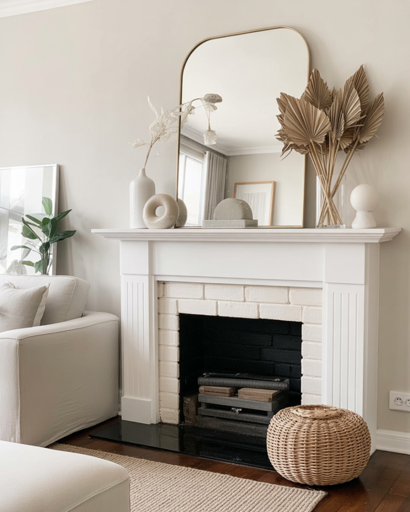 Placing a large mirror above the mantle doubles the impact of any design, reflecting light and making a room feel taller. Mirrors can work in both traditional and modern settings, depending on the frame style—think ornate gilded for classic, or black metal for chic simplicity. Designers like Joanna Gaines often use mirrors as a layering base for seasonal décor.